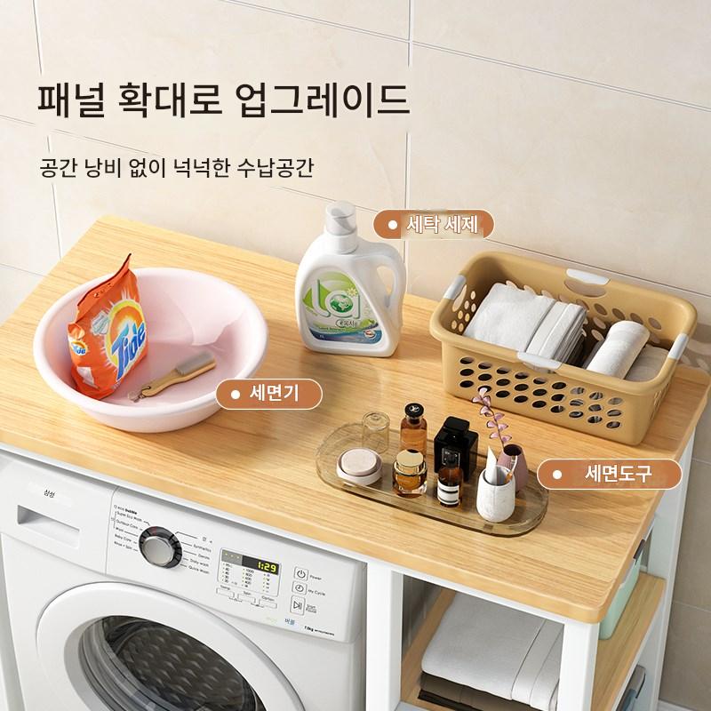 드럼 위에 세탁기 선반을 설치하여 T자형 캐비닛을 차단하고 발코니에 변기 세면대 선반을 쌓아서 수납할 수 있는 선반을 설치했습니다.