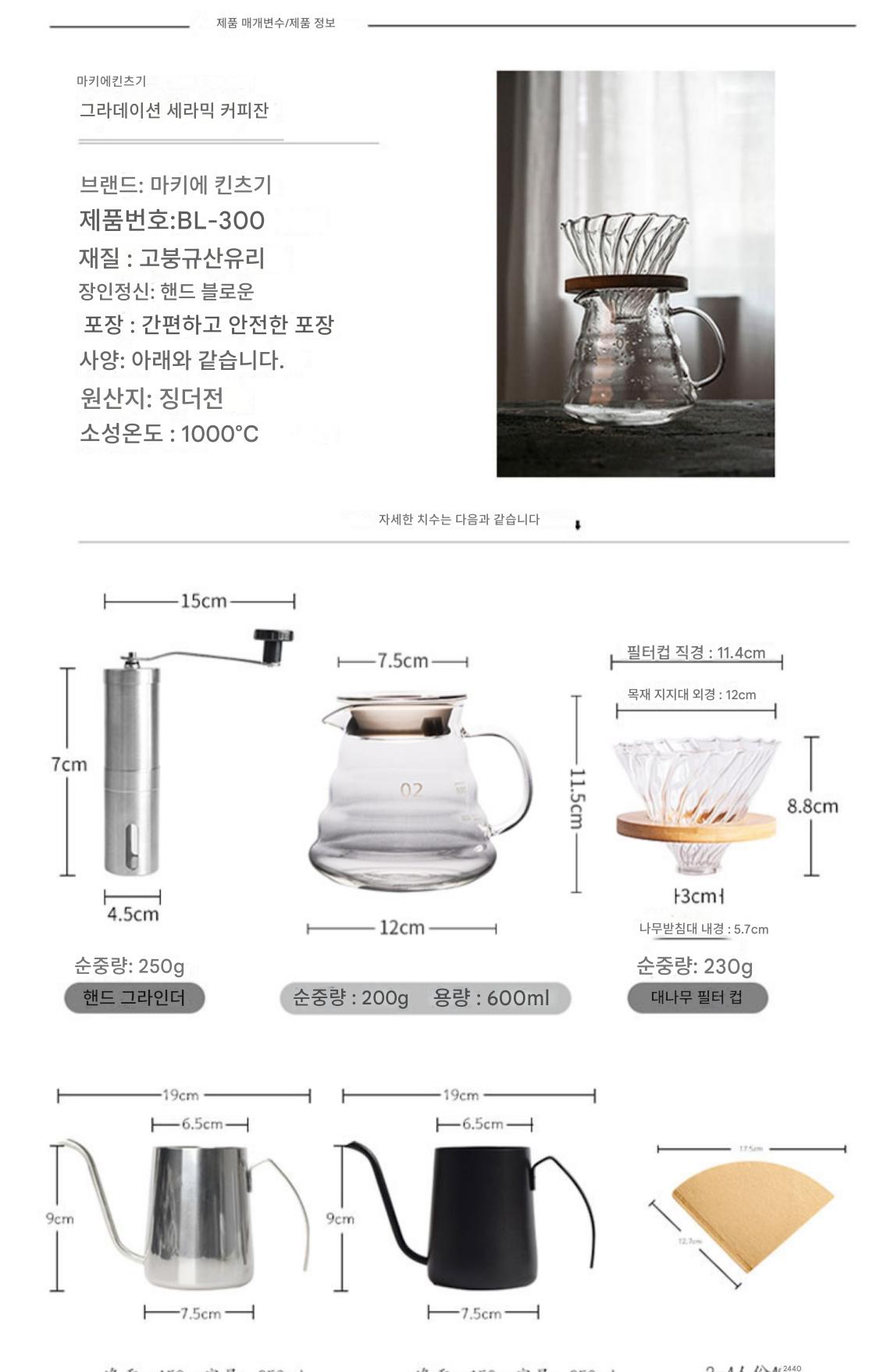드립 커피포트 세트 필터 커피필터 컵 V60 커피쉐어링 포트 유리 가정용 클라우드 포트