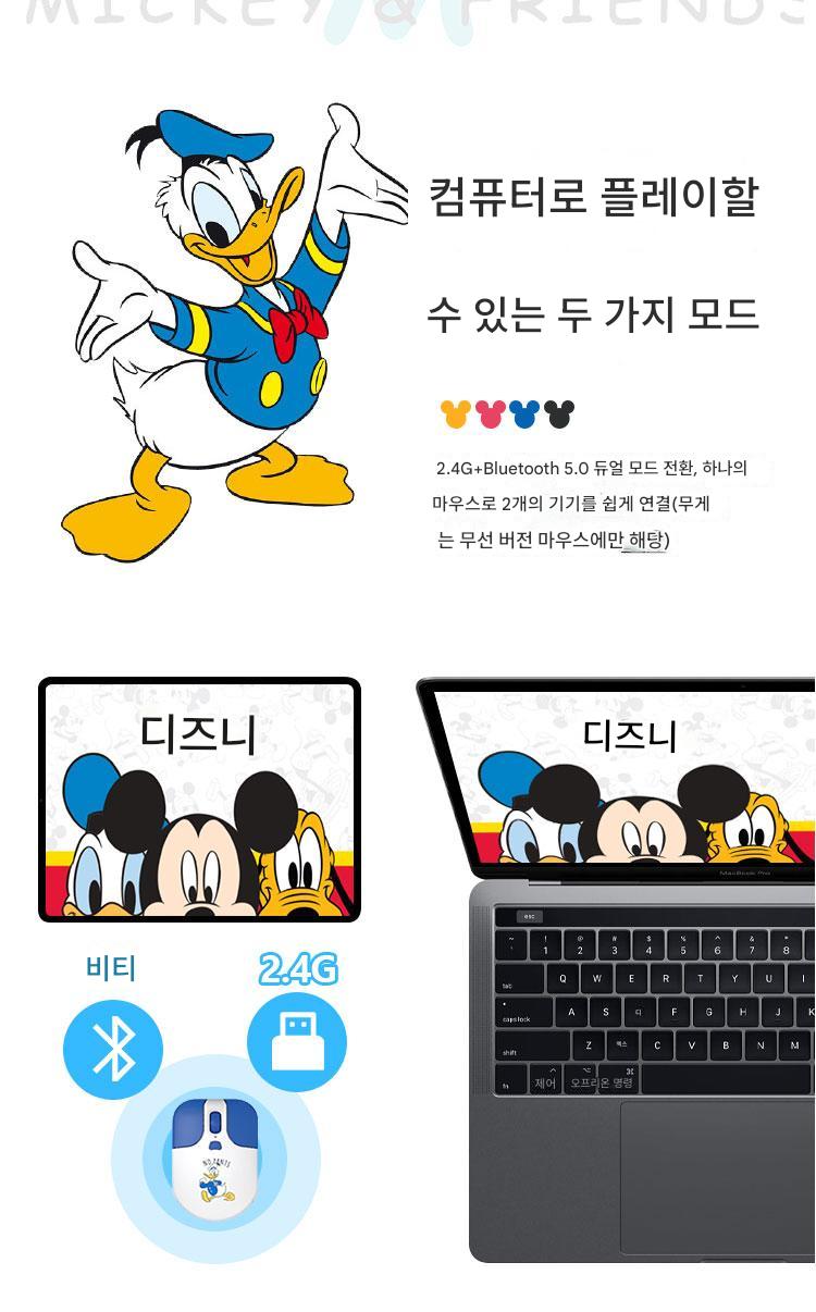 디즈니 디즈니 어린이 마우스 블루투스 2.4 무선 듀얼모드 학생용 소형 미니 귀여운 만화 컬러