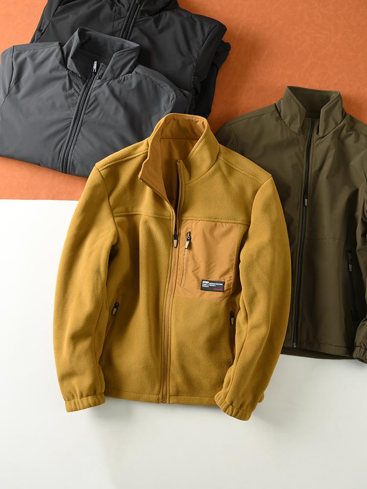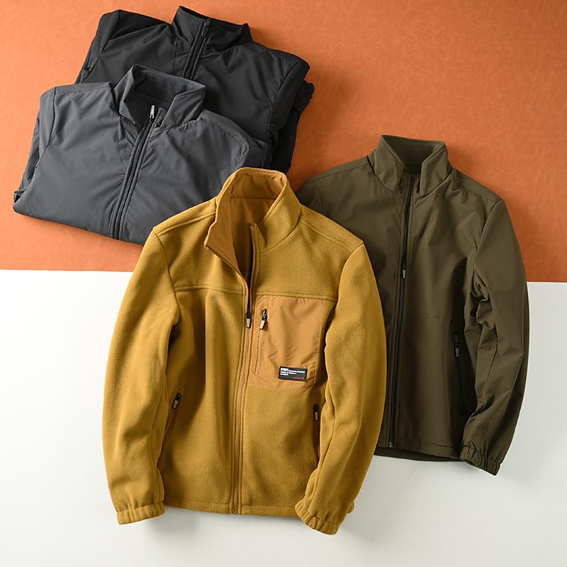 디지아 양면 소프트쉘 재킷 가을 겨울 남성용 스탠드업 칼라 합성 폴라 플리스 재킷 방수 두꺼워짐 재킷
