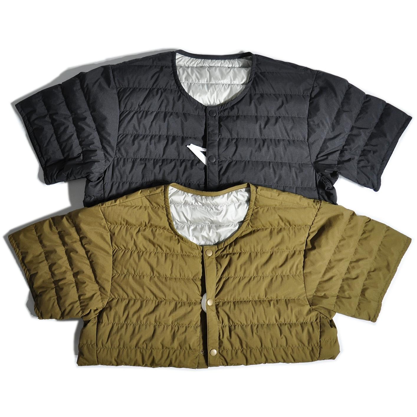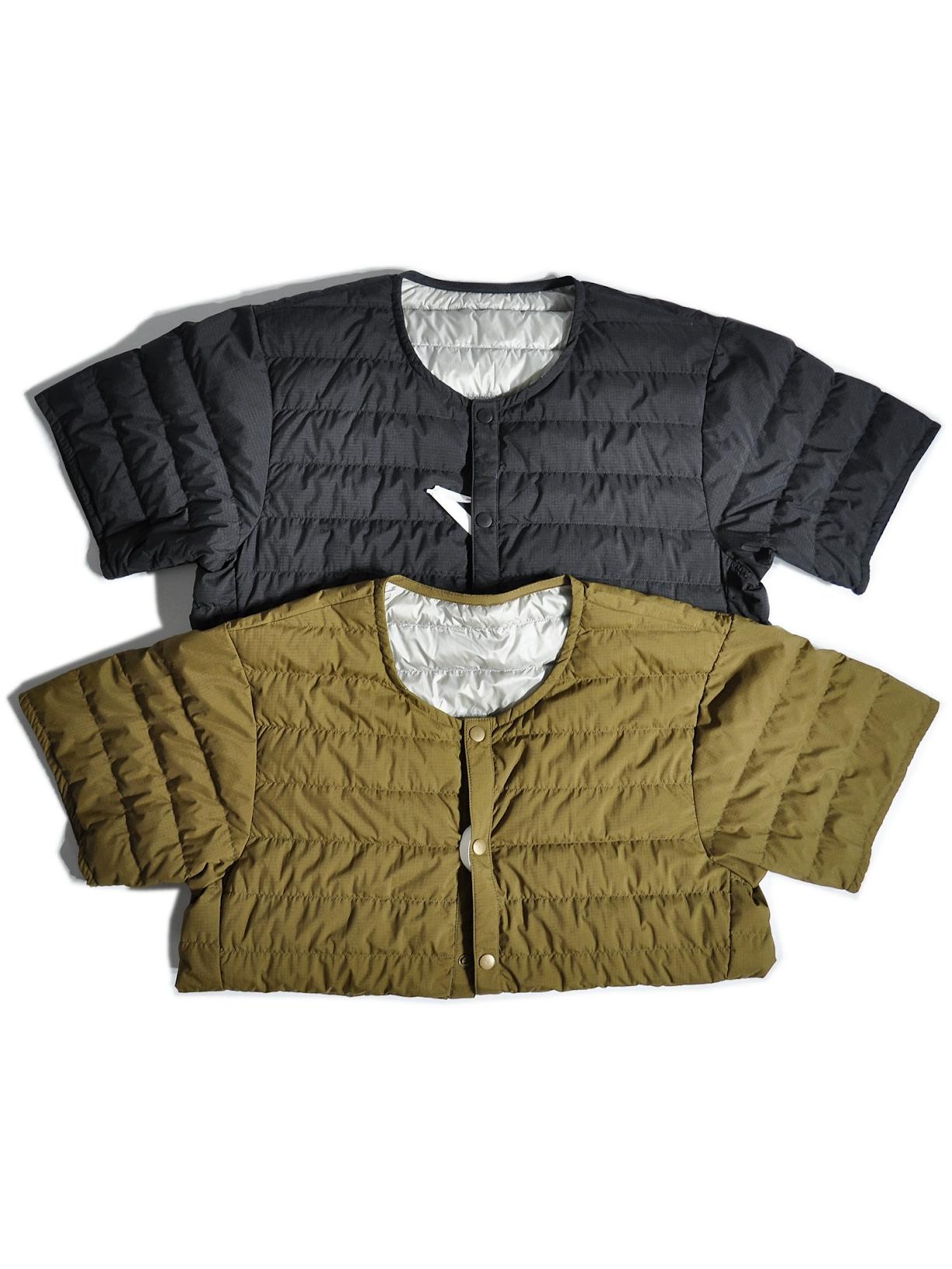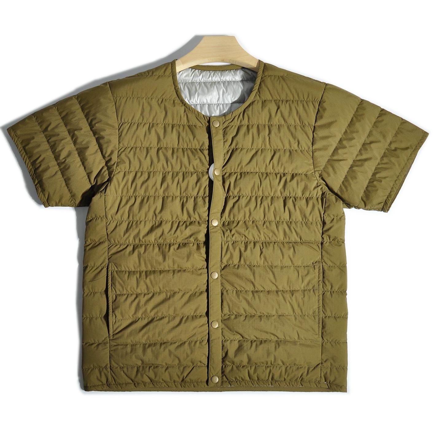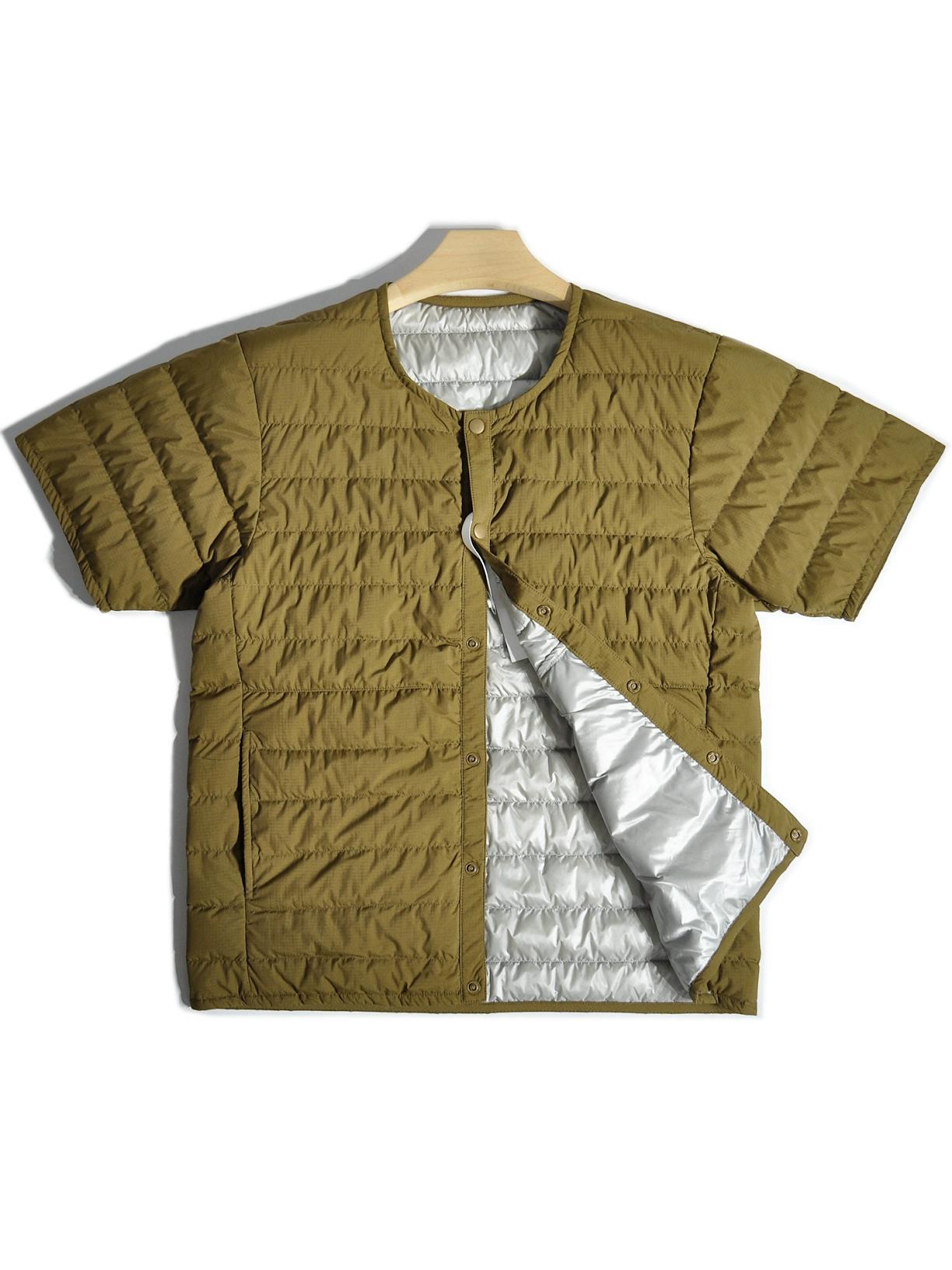 따뜻한 안감이 들어간 일본식 복고풍 산악 스타일 야외용 경량 흰색 덕다운 재킷, 짧은 소매의 겹쳐진 칼라 없는 짧은 소매 겉옷.