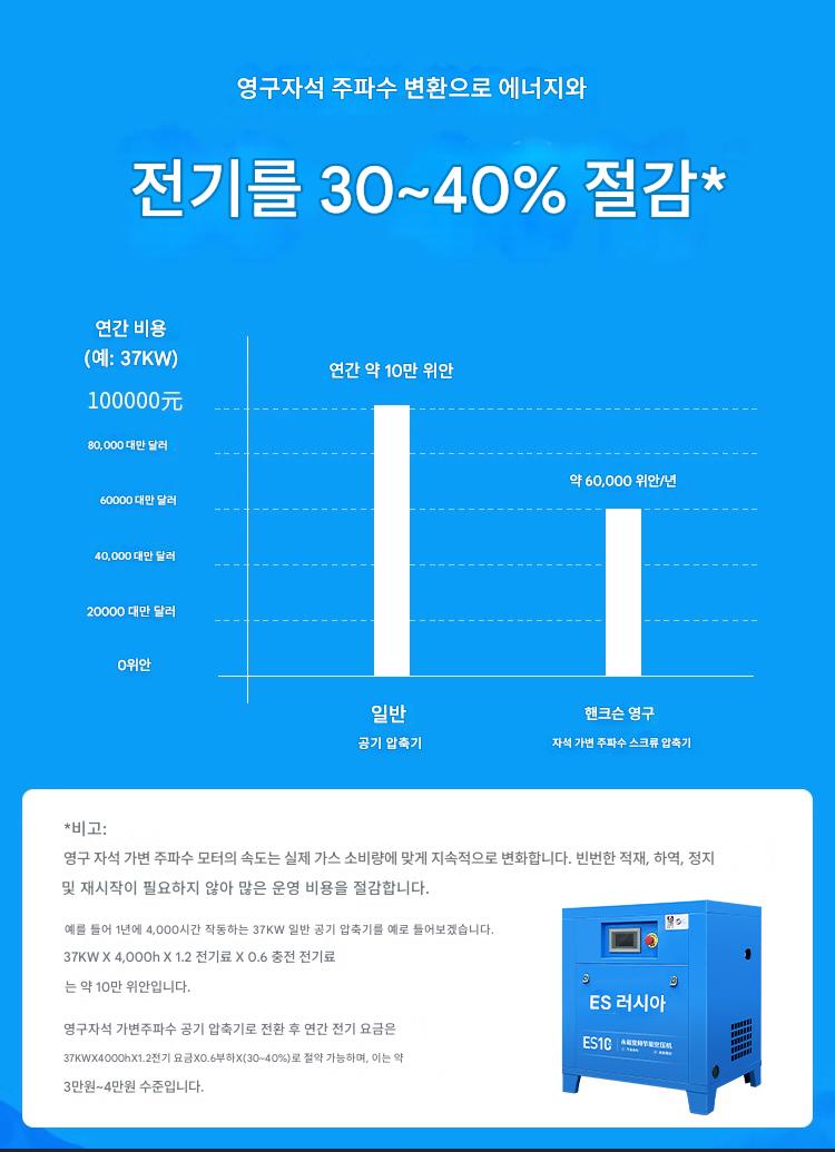 러시아산 스크류 영구자석 가변 주파수 공기 압축기 7.5/15/22/37kw 무소음 에너지 절약 공기 압축기