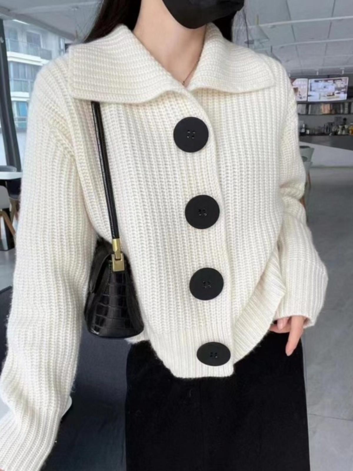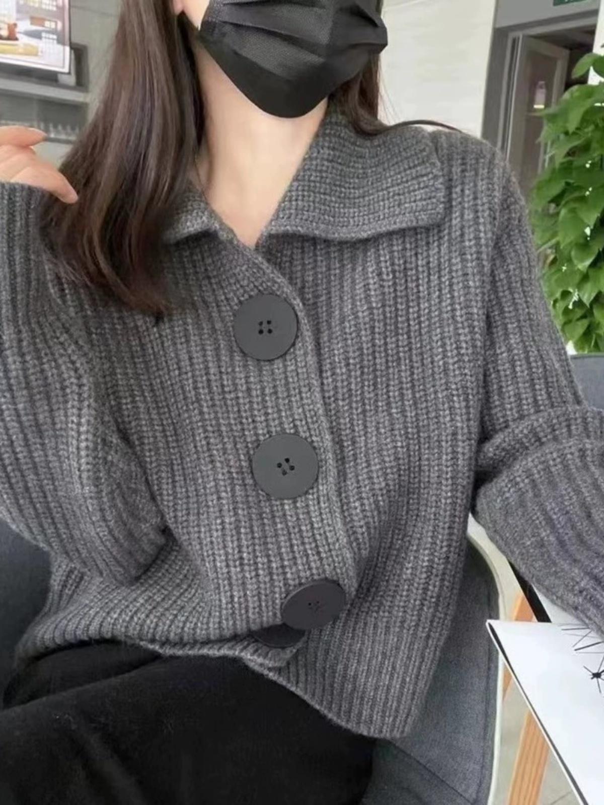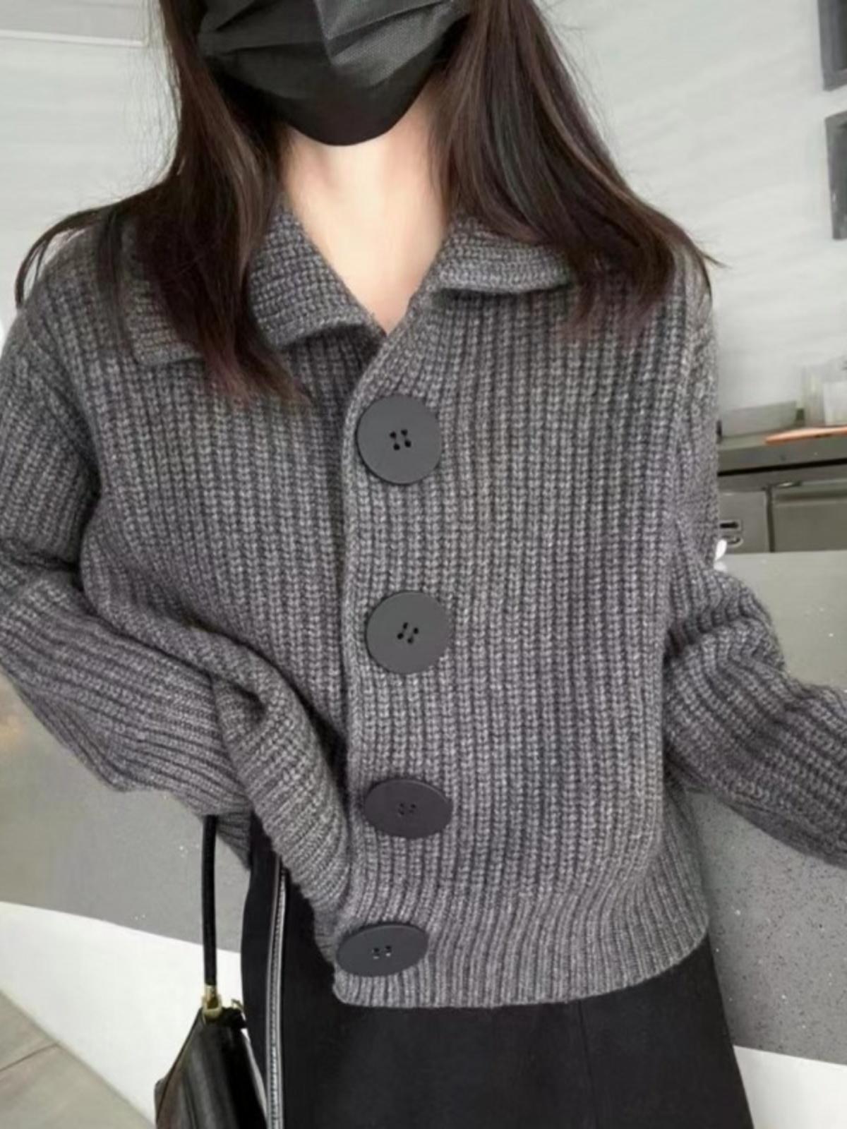 레트로 라펠 오렌지 스웨터 카디건 여성 초가을 루즈 레이지 스타일 코트 니치 디자인 니트 탑 두꺼운
