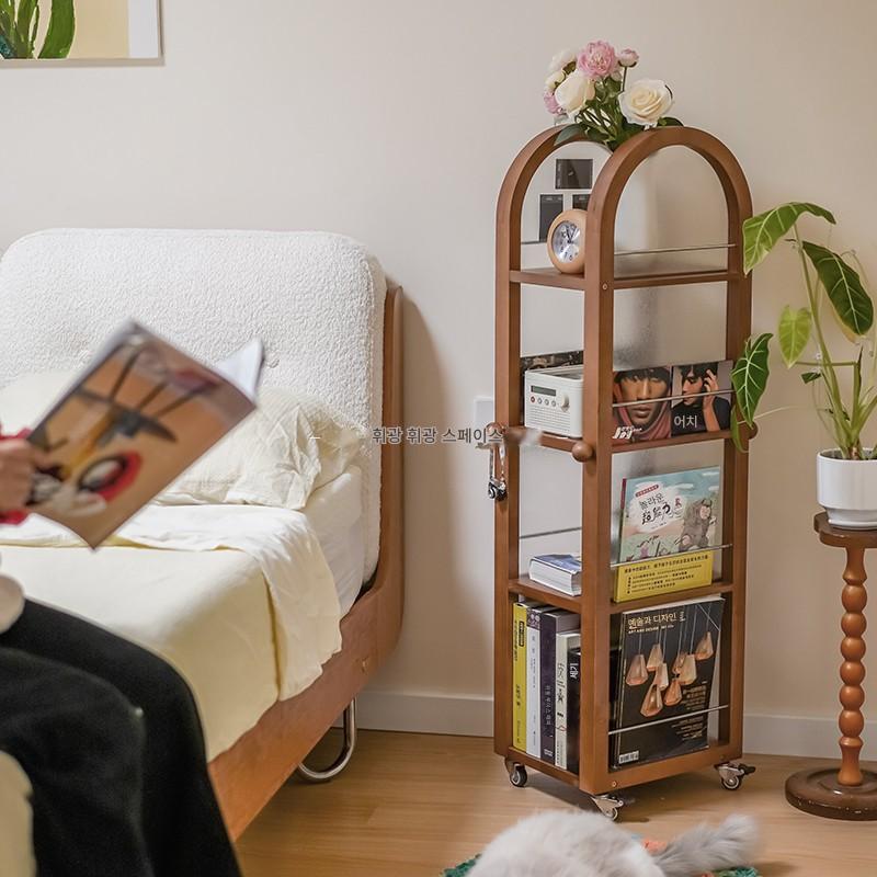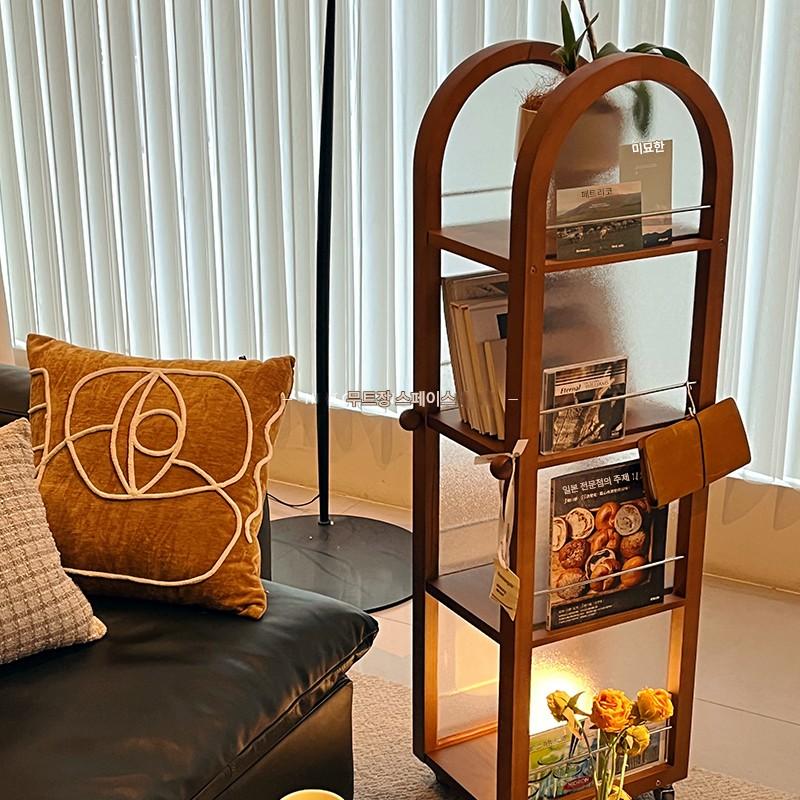 레트로 인스 스타일 이동식 아치형 책장 디스플레이 랙 소형 가정 거실 벽면 수납 랙