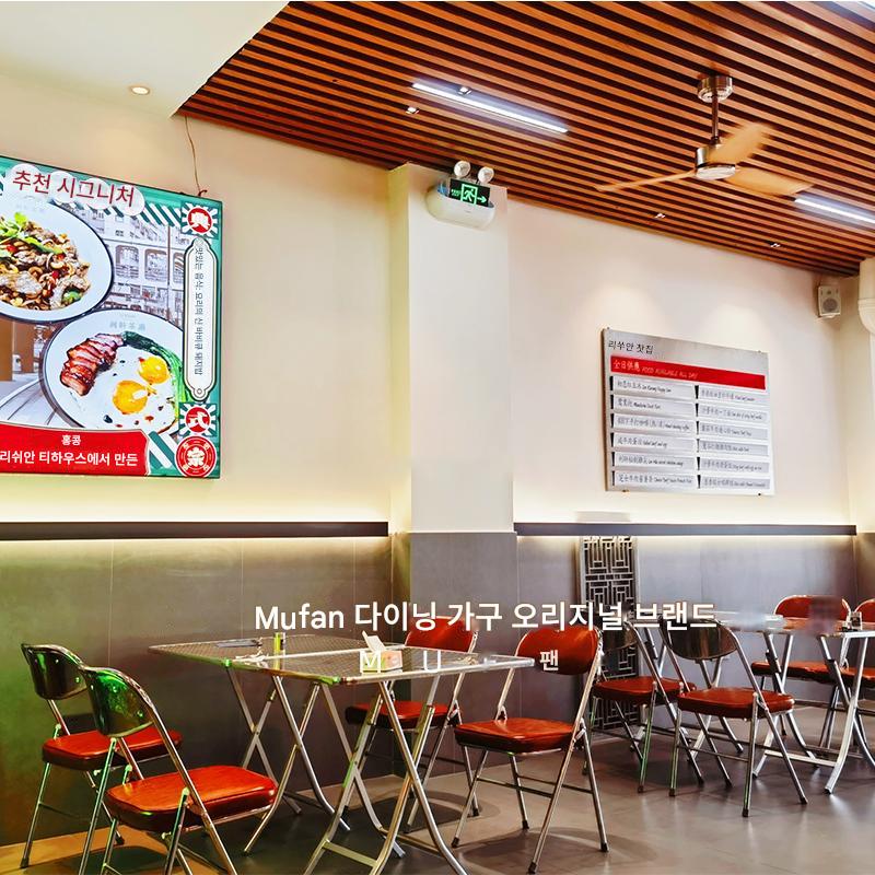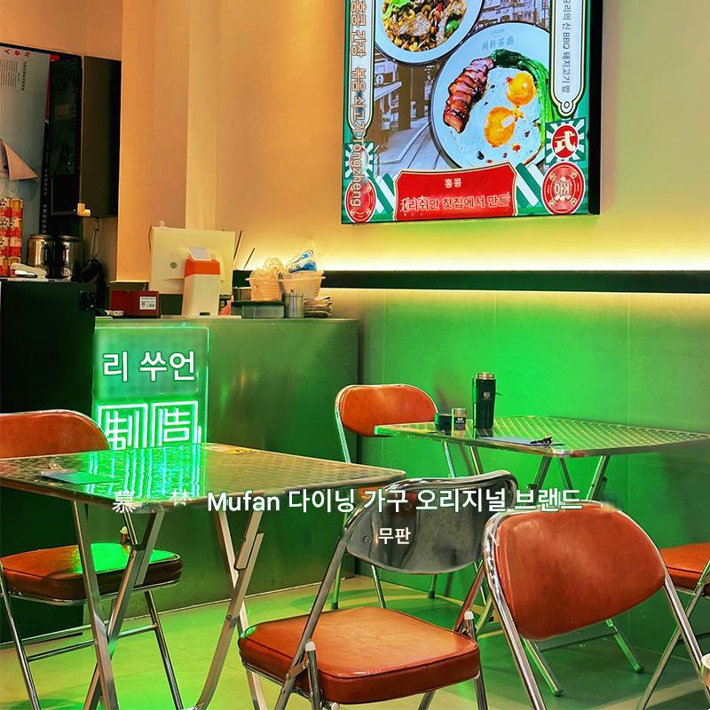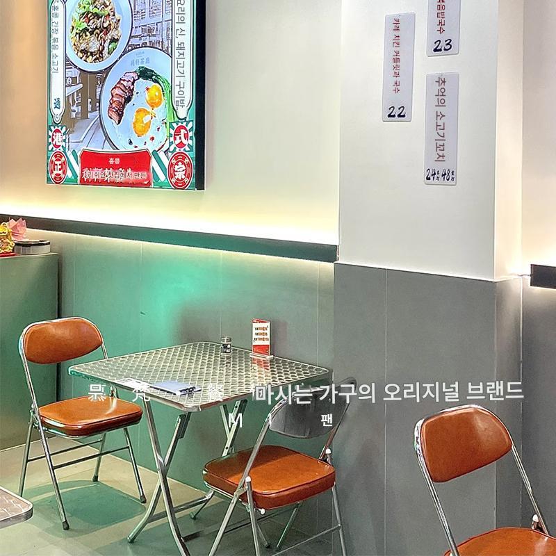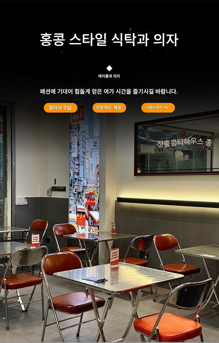 “레트로 홍콩 스타일 테이블과 의자 조합 한국식 간식 바베큐 고기 쌀국수 케이터링 티 레스토랑 스테인리스 스틸 접이식 테이블 상업용”의 첫 상품평을 남겨 주세요