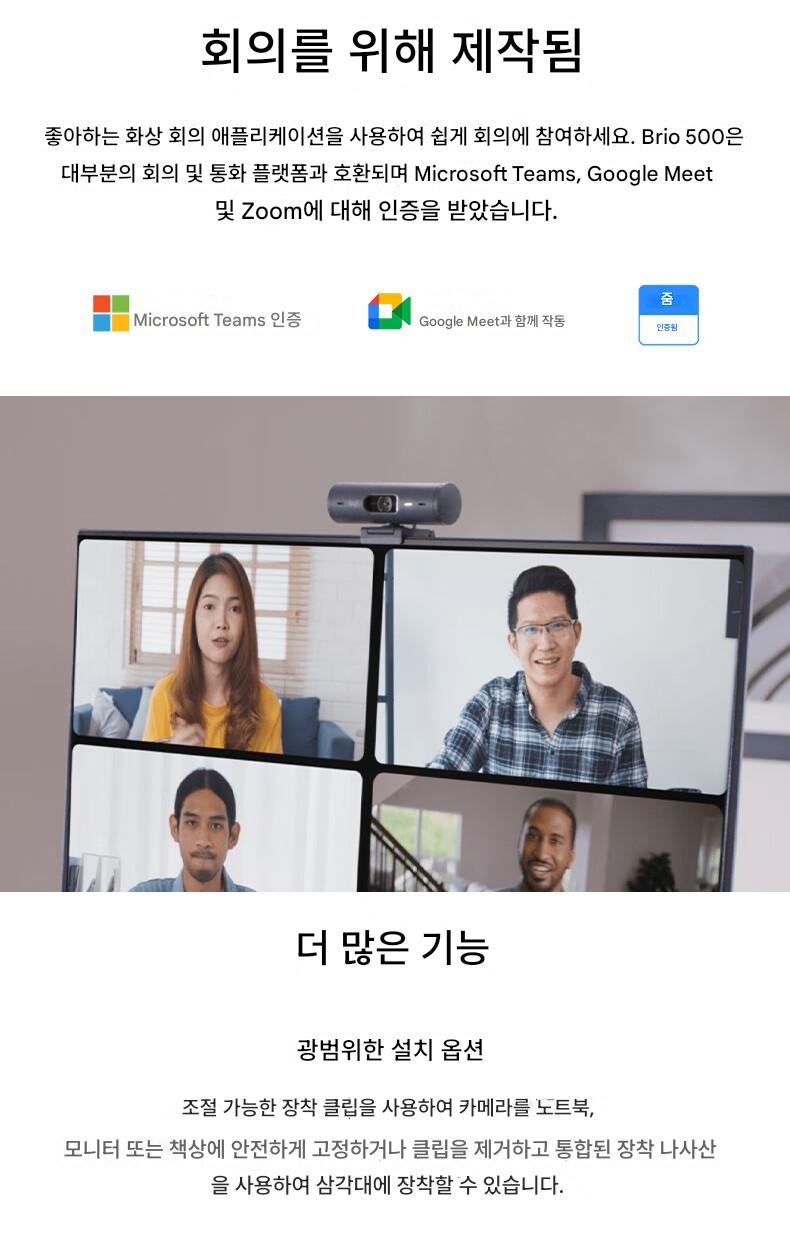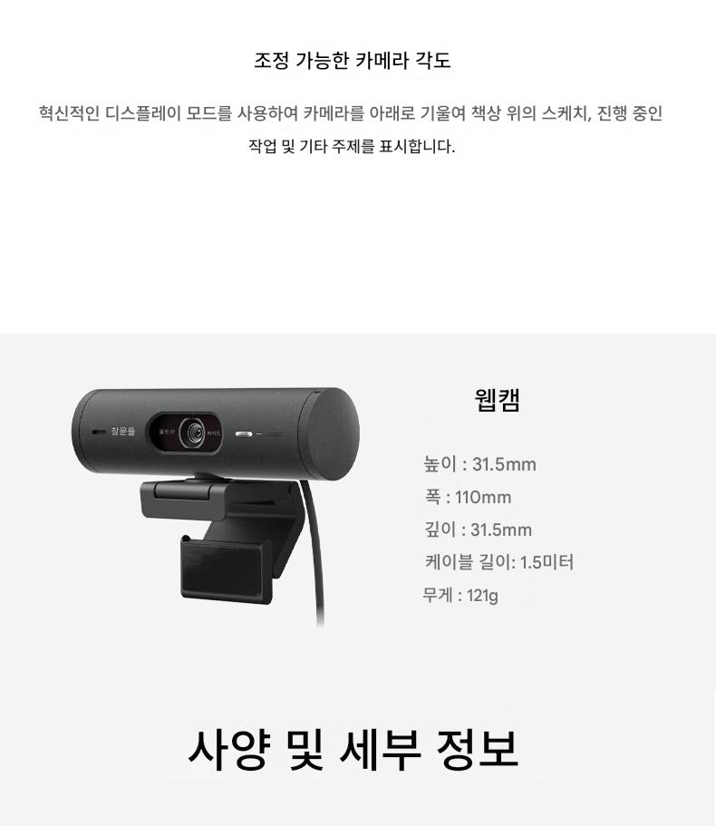 로지텍 브리오 500 HD 광각 라이브 카메라 마이크 뷰티 앵커 컴퓨터 온라인 수업 화상 회의