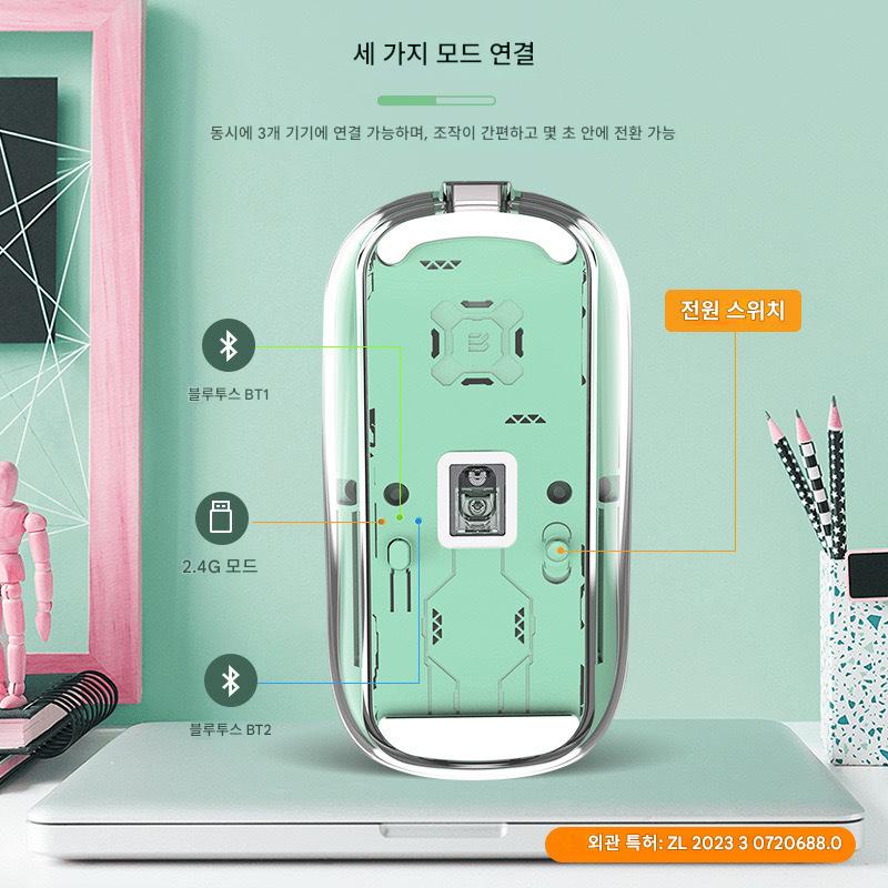 로지텍 3모드 무선 블루투스 투명 마우스 타입-C 충전 무소음 비즈니스 오피스 마우스