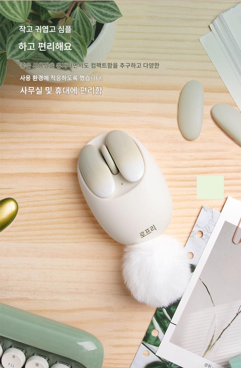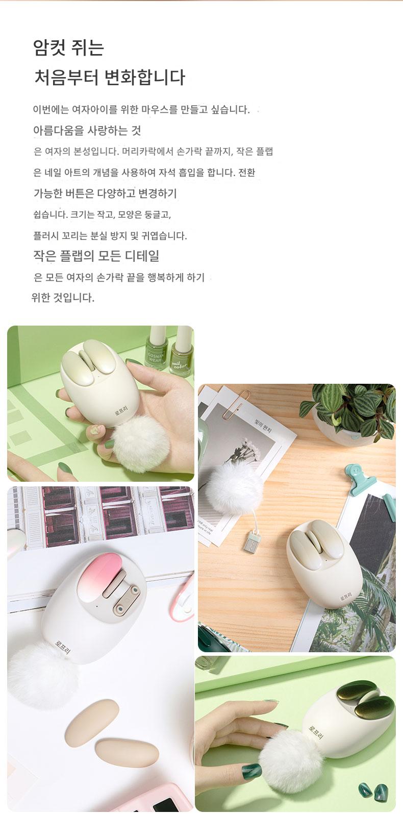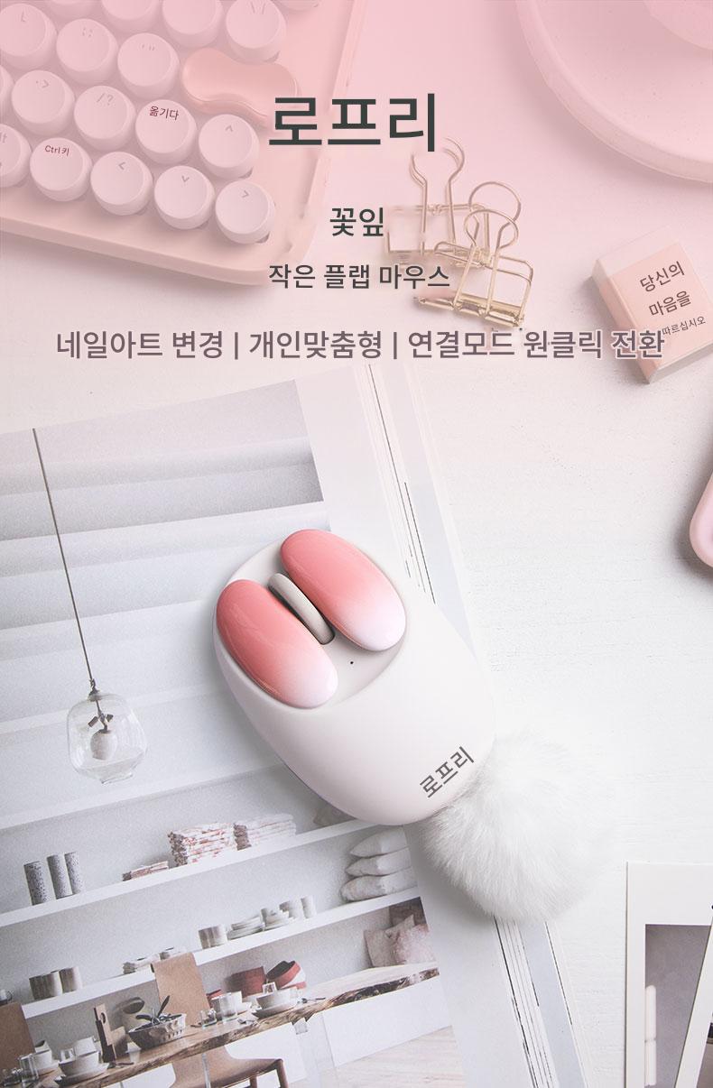 로프리 로프리 소형 플랩 마우스 무선 2.4G 통합 블루투스 듀얼모드 게임 소형장미 소형행복 여아용