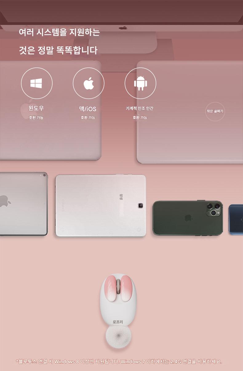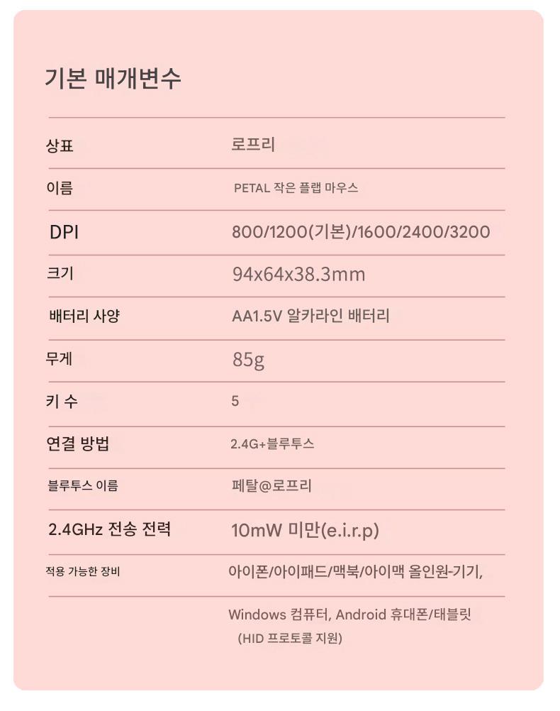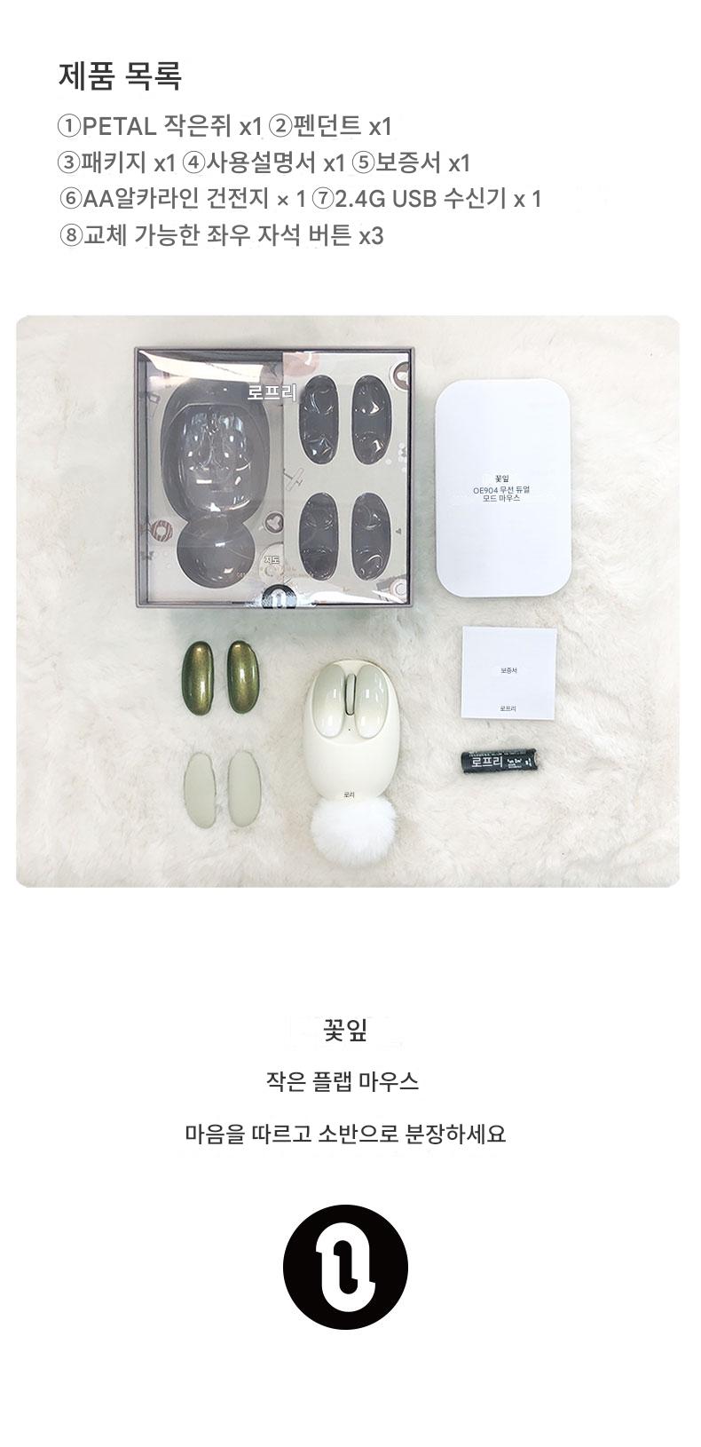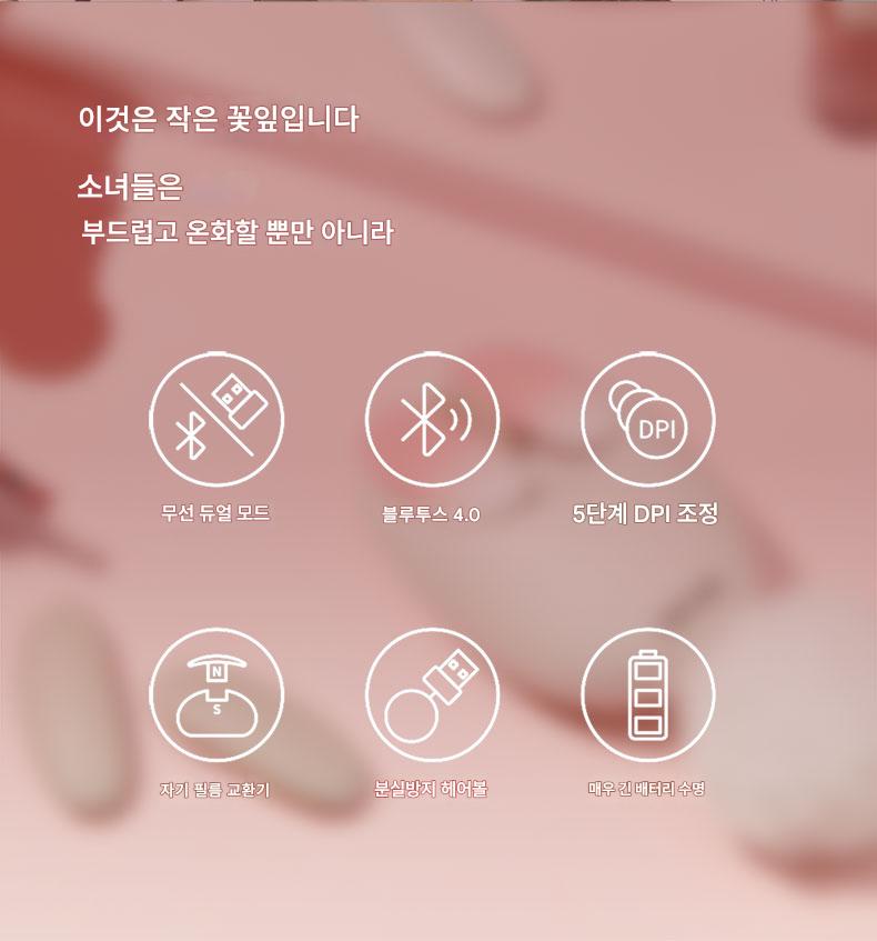 로프리 로프리 소형 플랩 마우스 무선 2.4G 통합 블루투스 듀얼모드 게임 소형장미 소형행복 여아용