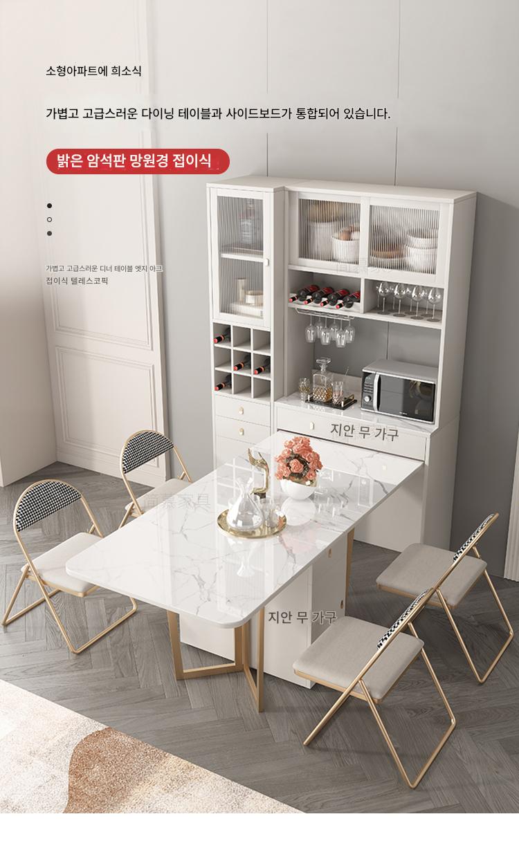 록 슬래브 접이식 식탁, 다이닝 사이드 캐비닛, 통합 다기능 보관 와인 캐비닛, 현대 가정용 소형 아파트 접이식 식탁
