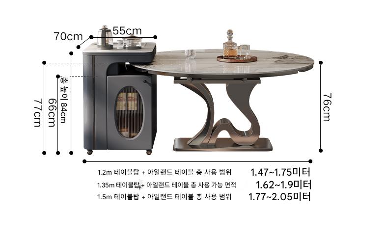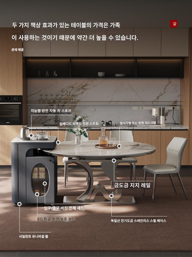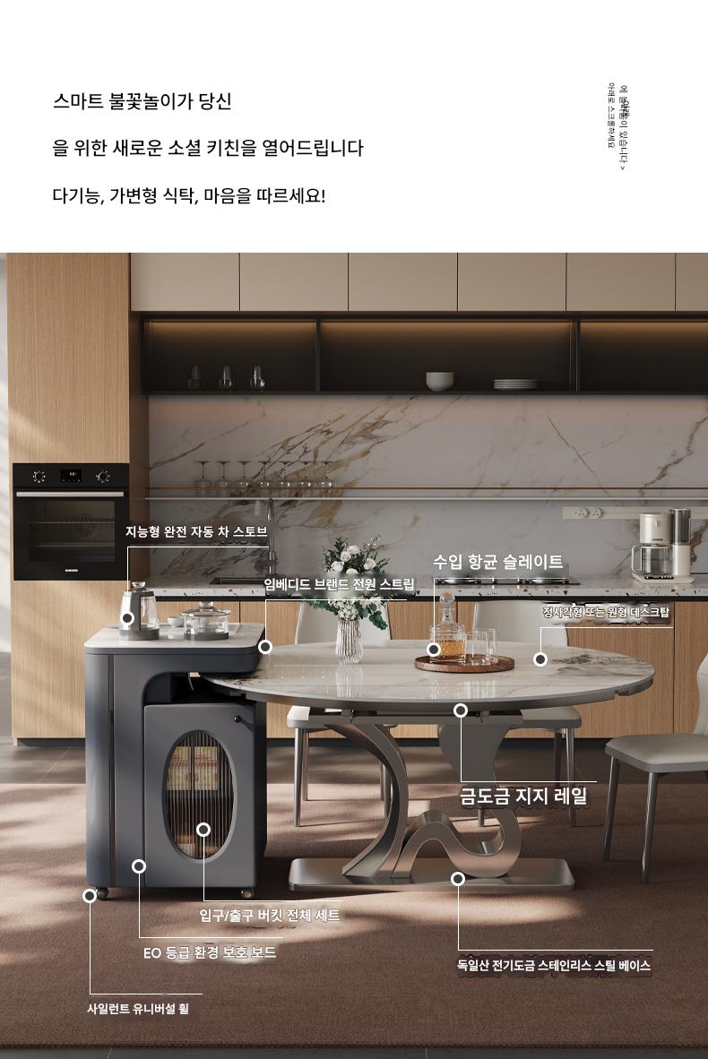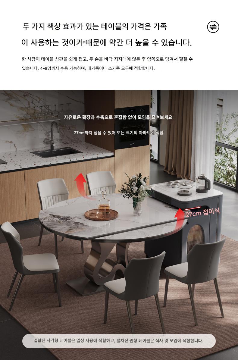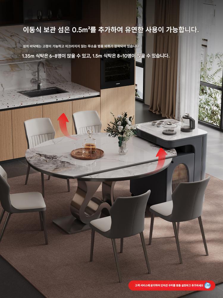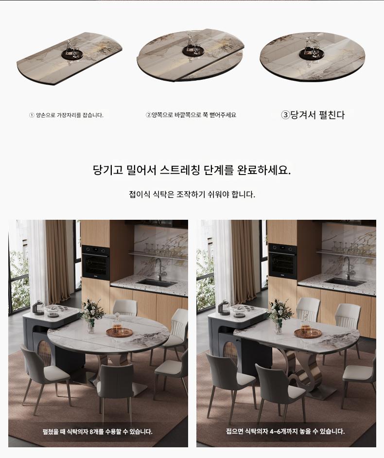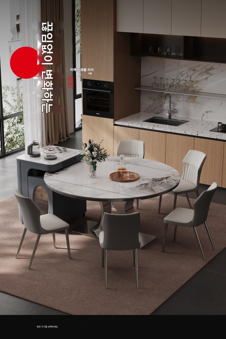 록 플레이트 아일랜드 식탁 가변 원형 테이블 수납식 주방 가이드 테이블 이동식 다기능 분리 다운턴 이탈리안 미니멀리스트