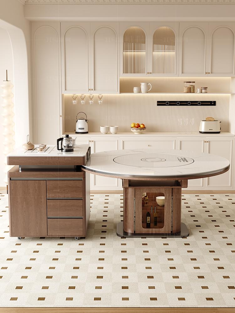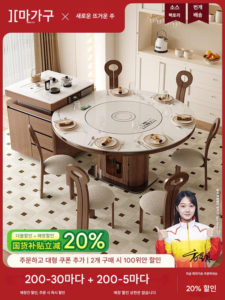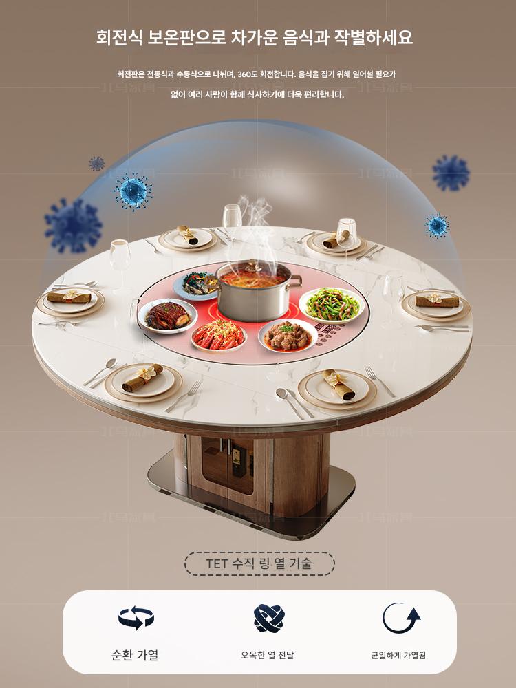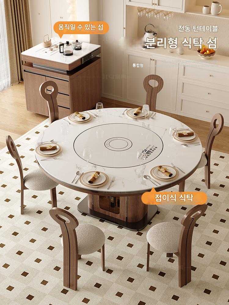 록 플레이트 아일랜드 테이블 통합 가정용 분리형 현대식 조명 럭셔리 스마트 웜 푸드 턴테이블 견고한 목재 접이식 원형 테이블
