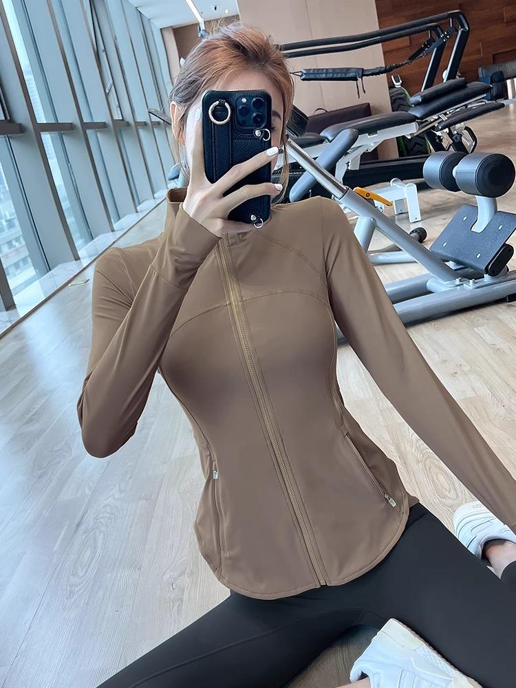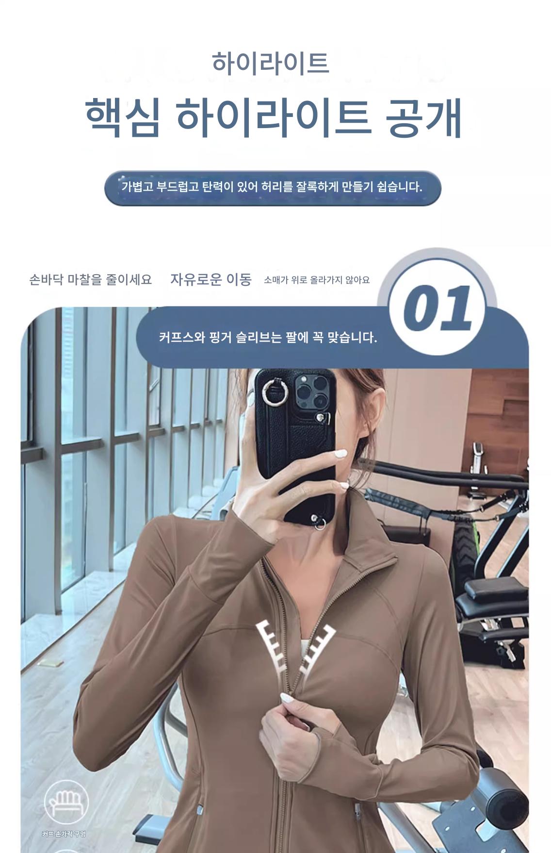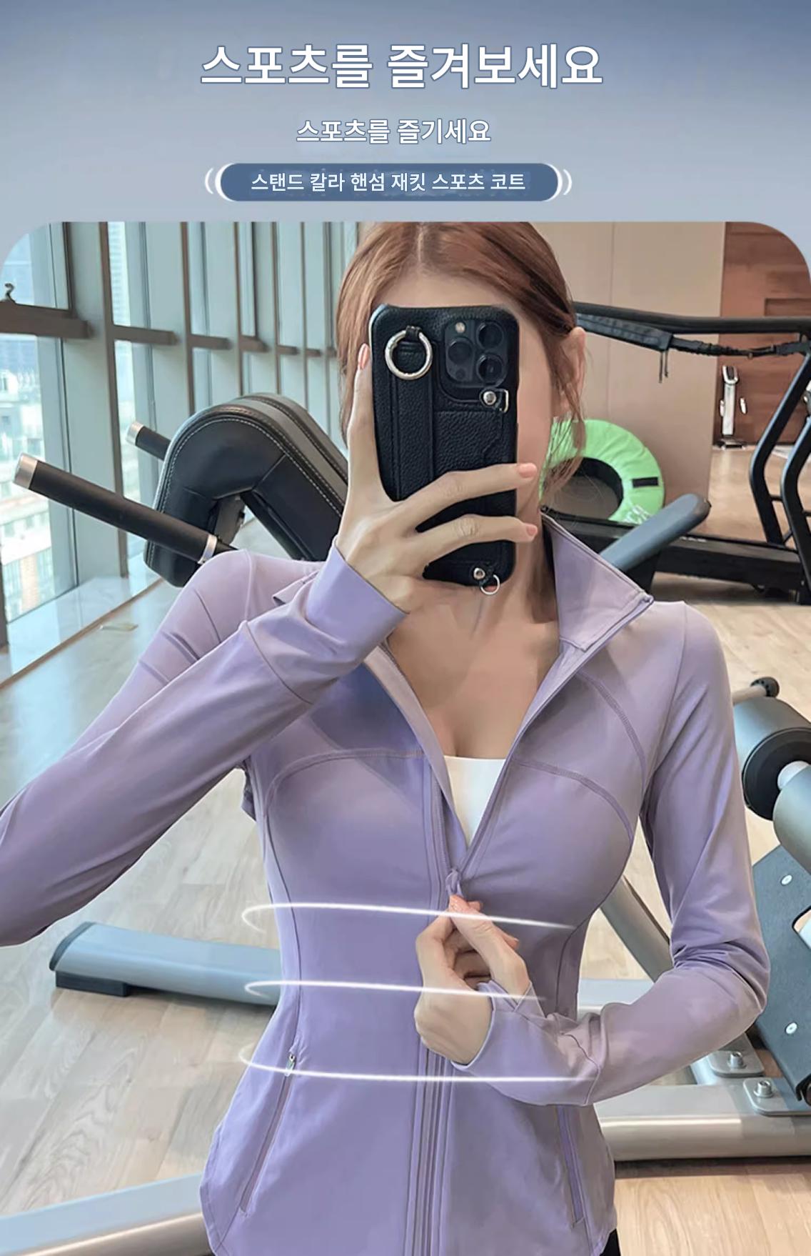 롱스탠드업칼라 핸섬스포츠재킷 넷셀러브리티 속건요가복 긴팔타이트탑 봄가을 러닝재킷 여성용
