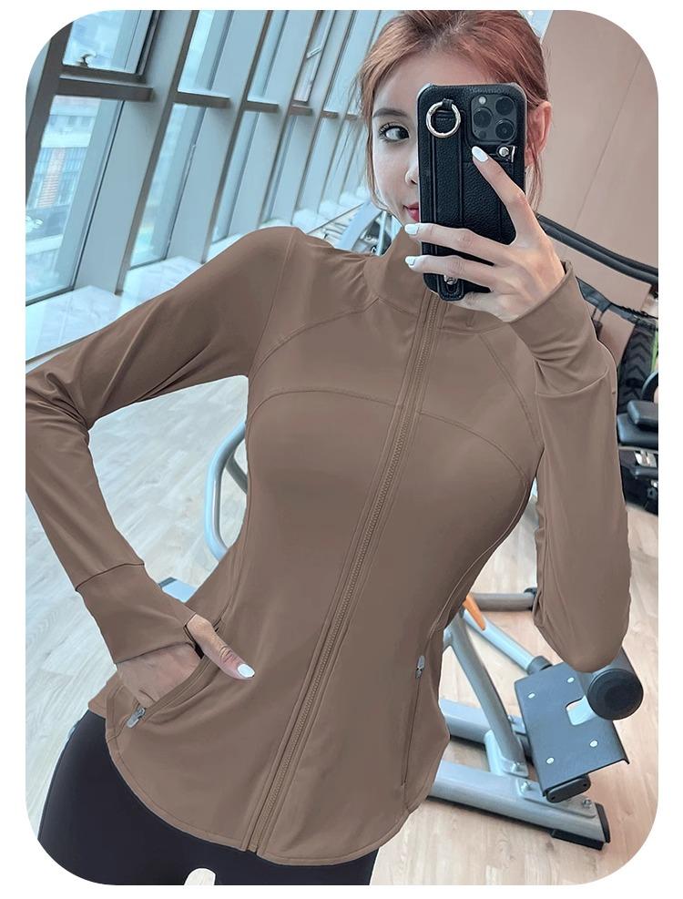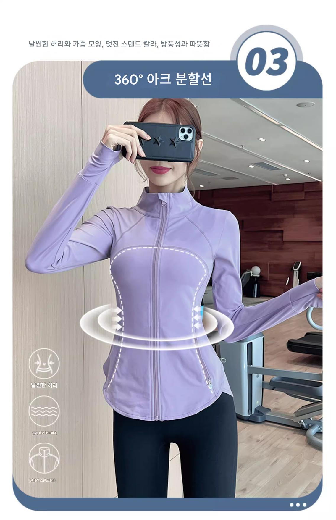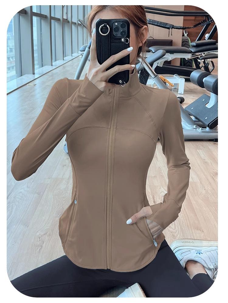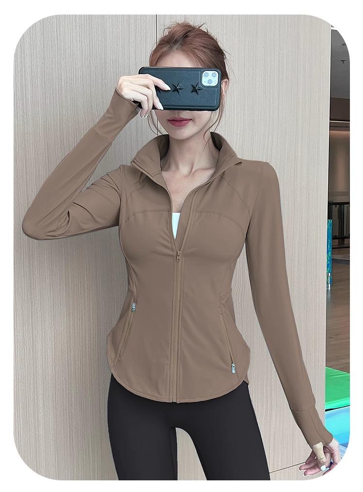 롱스탠드업칼라 핸섬스포츠재킷 넷셀러브리티 속건요가복 긴팔타이트탑 봄가을 러닝재킷 여성용