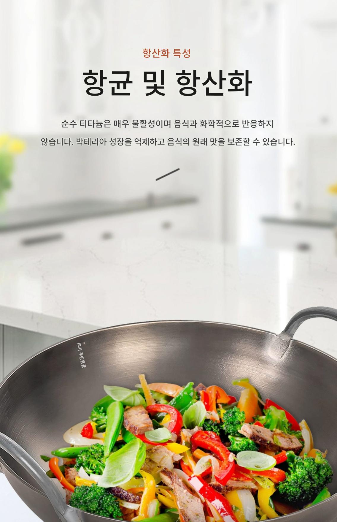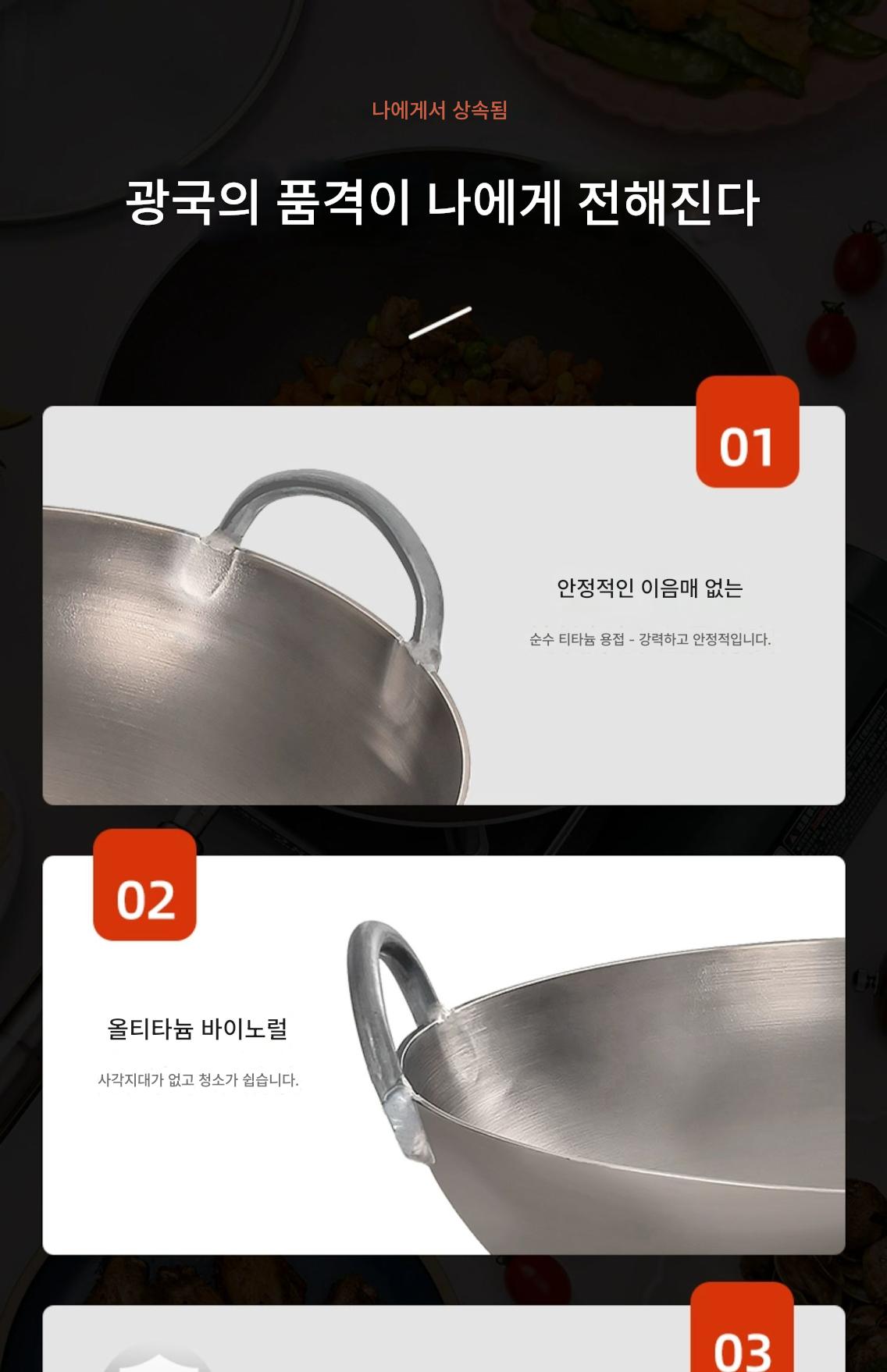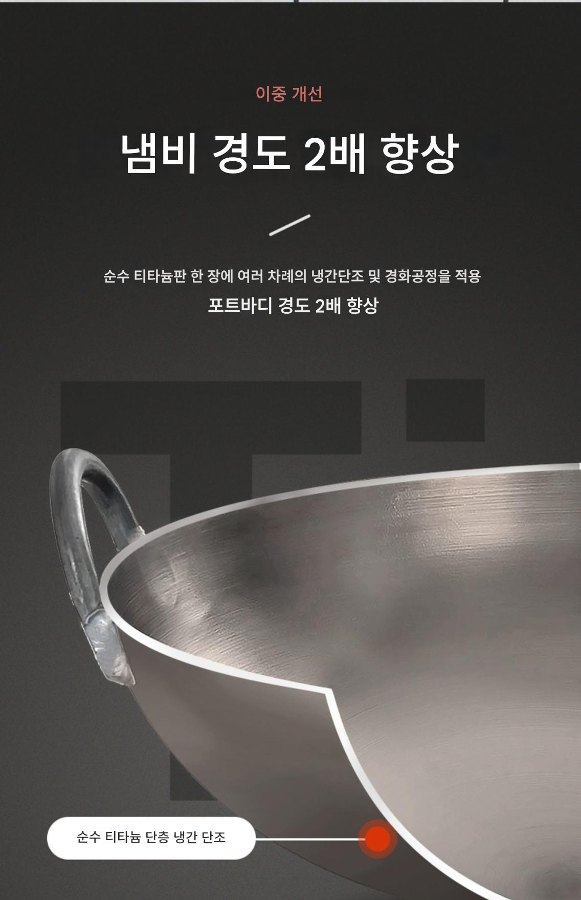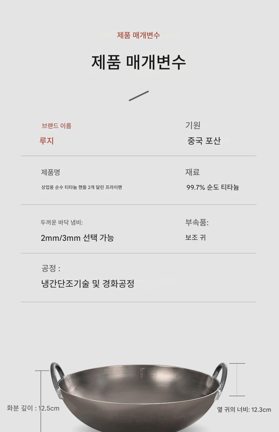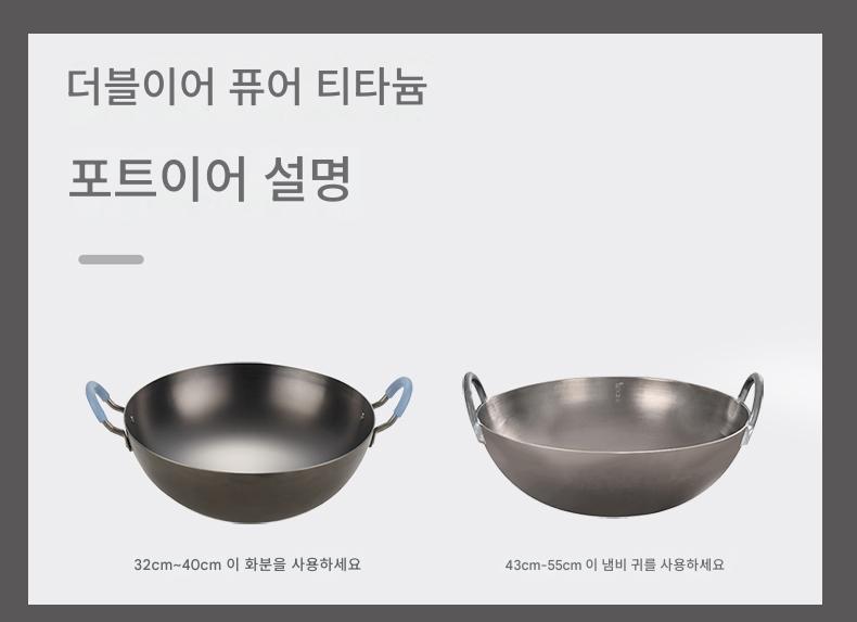 루지 더블 이어 두껍게 한 둥근 바닥 순수 티타늄 무코팅 가정용 및 상업용 중국식 요리 냄비 레스토랑 깊어지고 확대된 티타늄 냄비