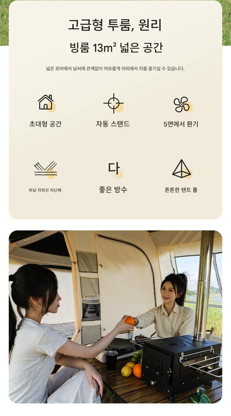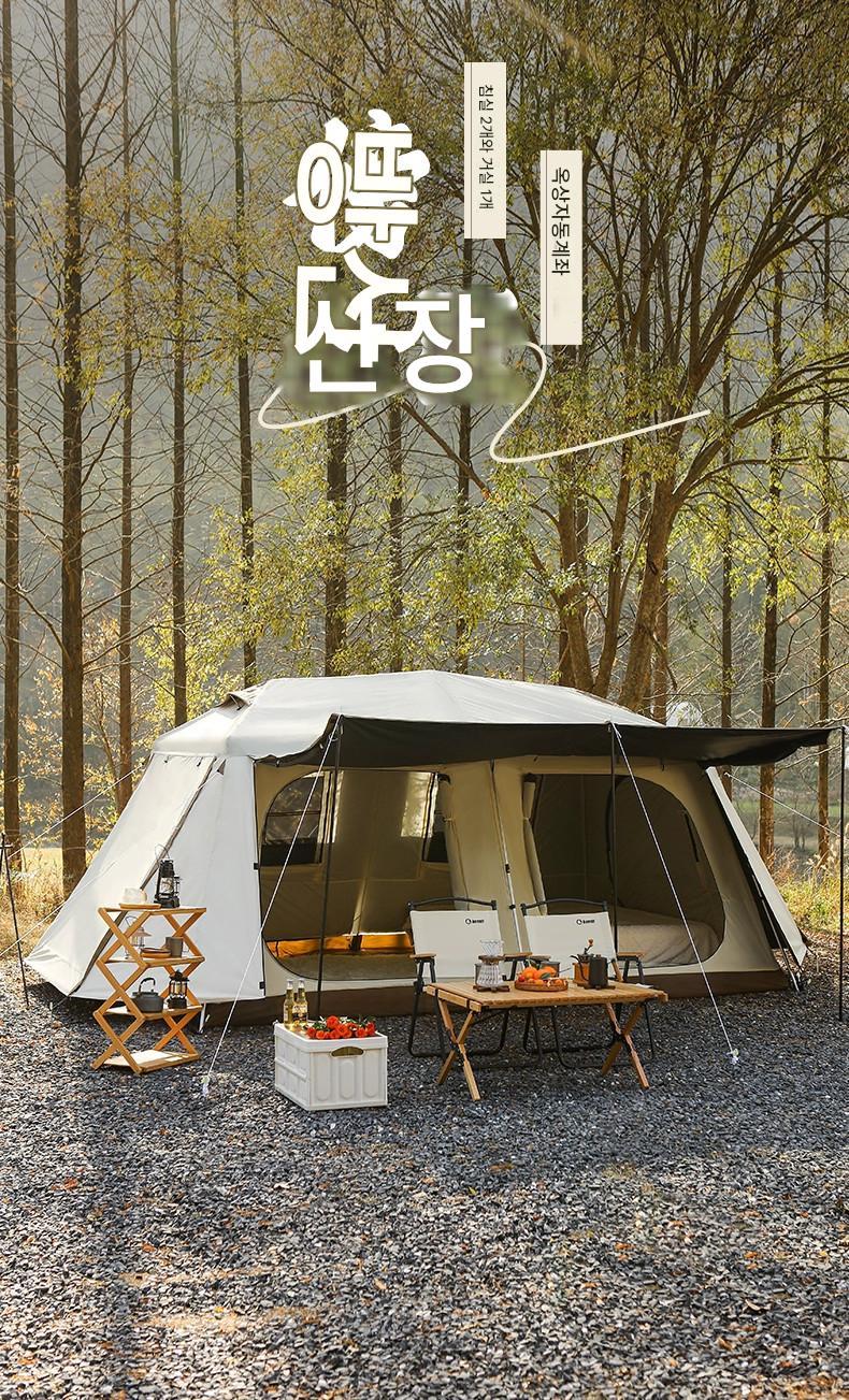 루프 13 전자동 야외 텐트 2개 방 1개 거실 야외 캠핑 장비 풀세트 블랙 글루 자외선 차단 및 방수 농축