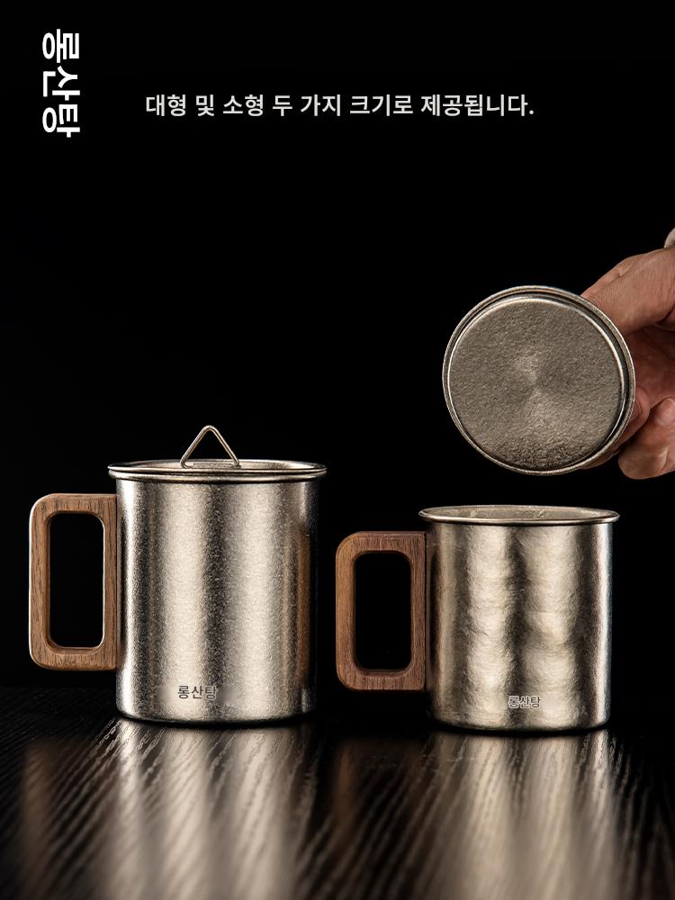 룽산탕 호두 손잡이 순수 티타늄 머그컵 티컵 티타늄 컵 사무실 물컵 휴대용 1인용 음용 티컵