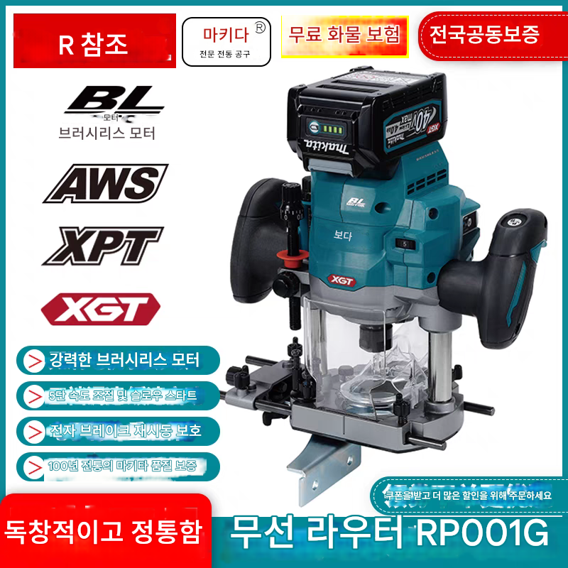 마키타 전기 목공 라우터 RP001GZ 목공 조각기 대형 징 머신 모티스 앤 테넌 목공 슬로팅 및 트리밍 머신 블루투스 연결