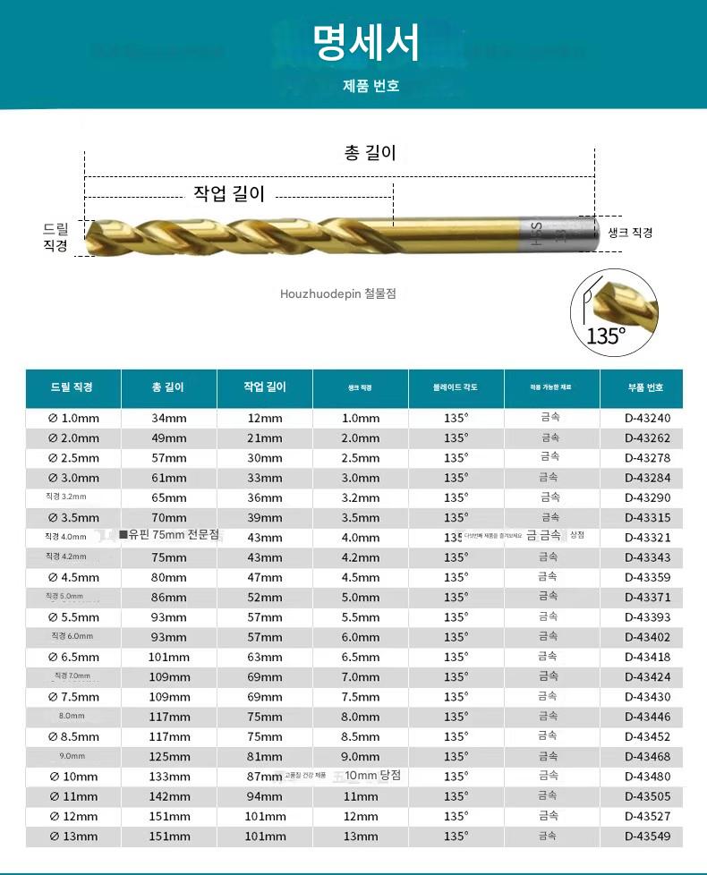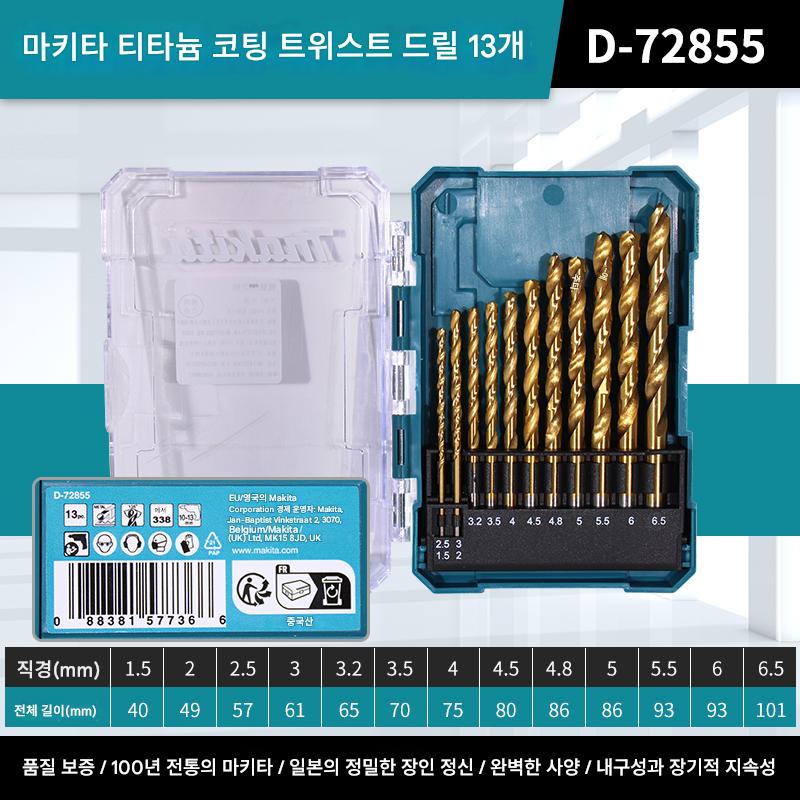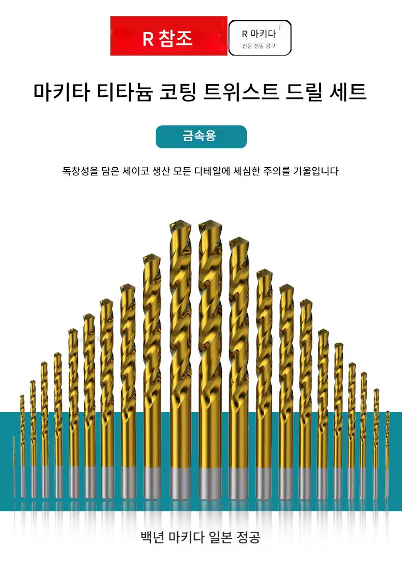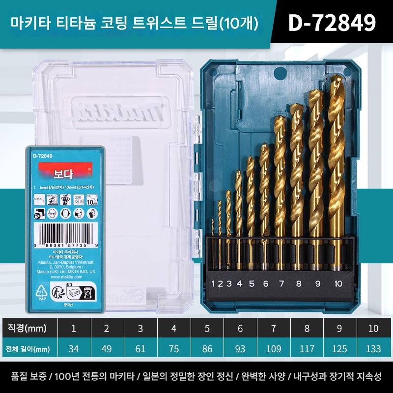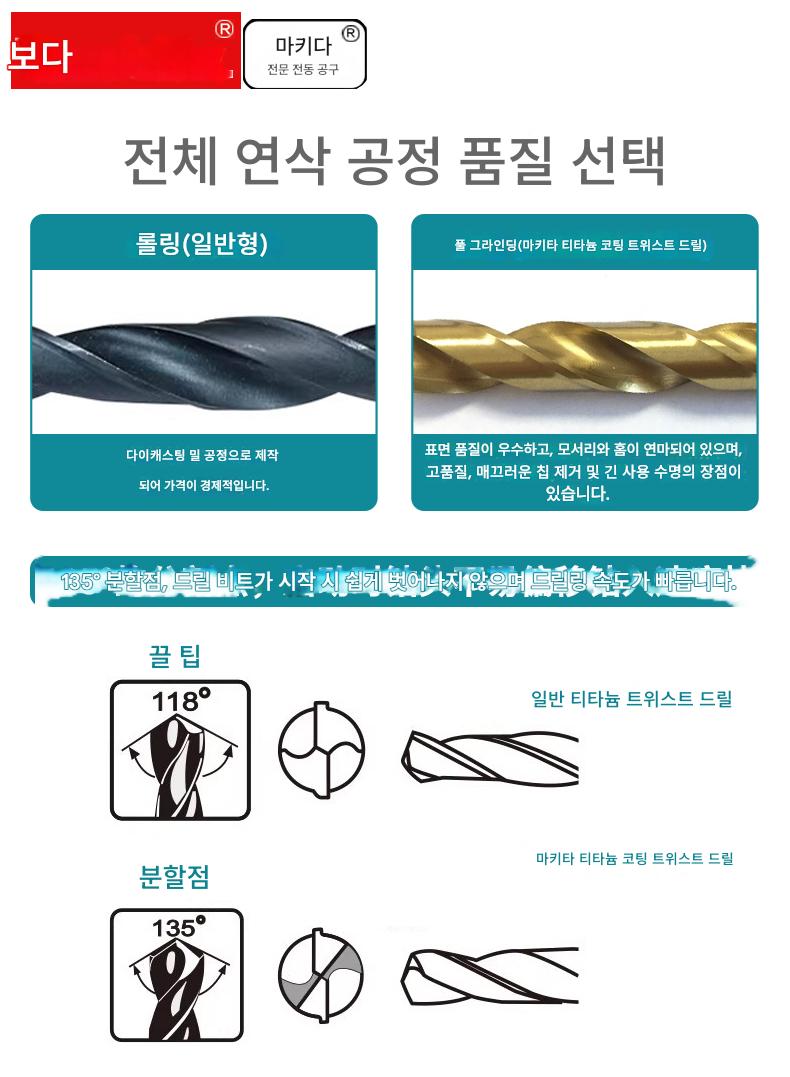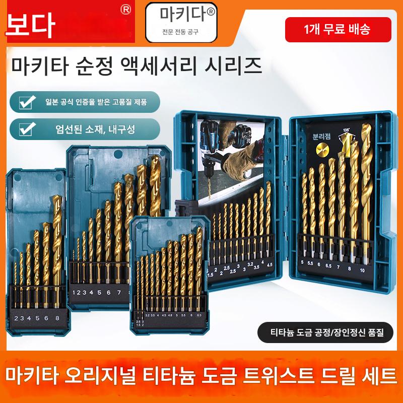 마키타 티타늄 도금 트위스트 드릴 비트 초경 스테인리스 스틸 전기 드릴 금속 카바이드 펀칭 세트