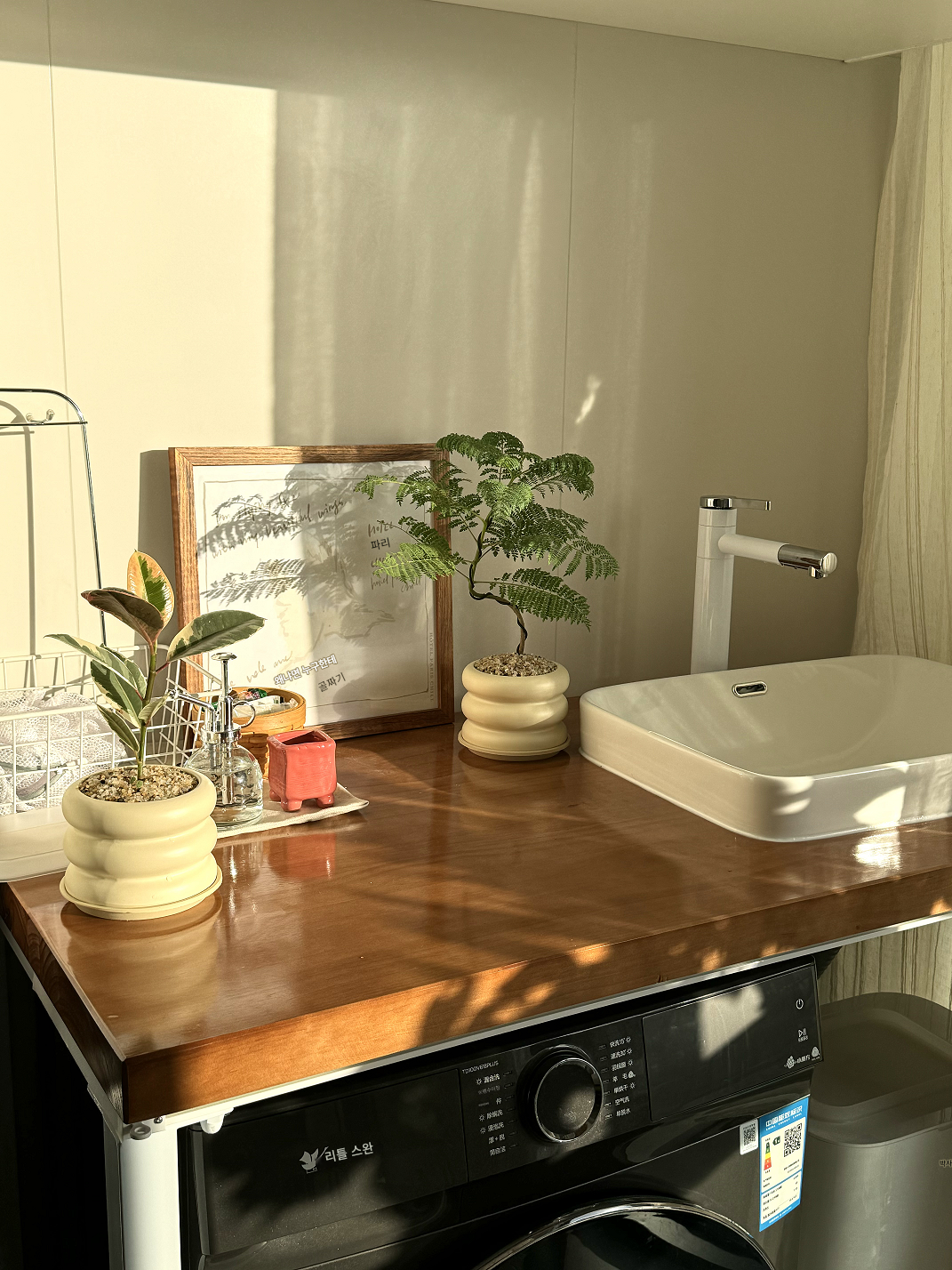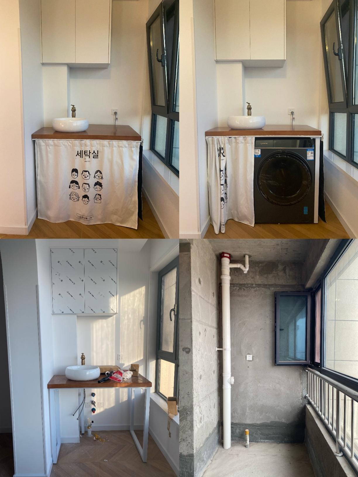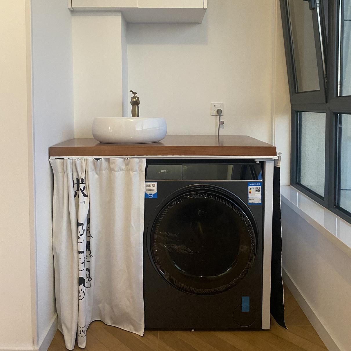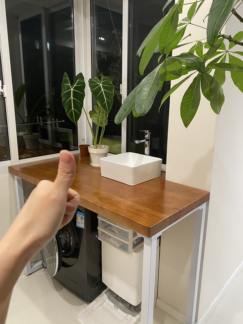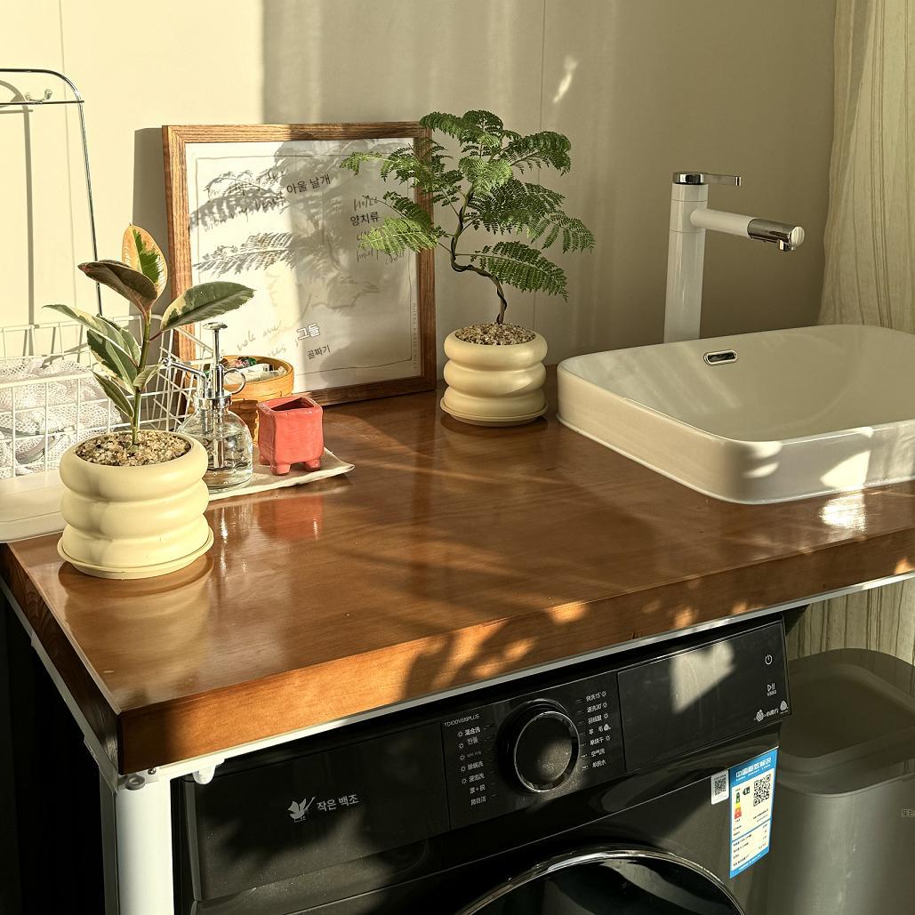 맞춤형 견고한 목재 조리대 발코니 세탁기 랙 위 소형 아파트 미니멀리스트 공간 변형 싱크대 통합 테이블