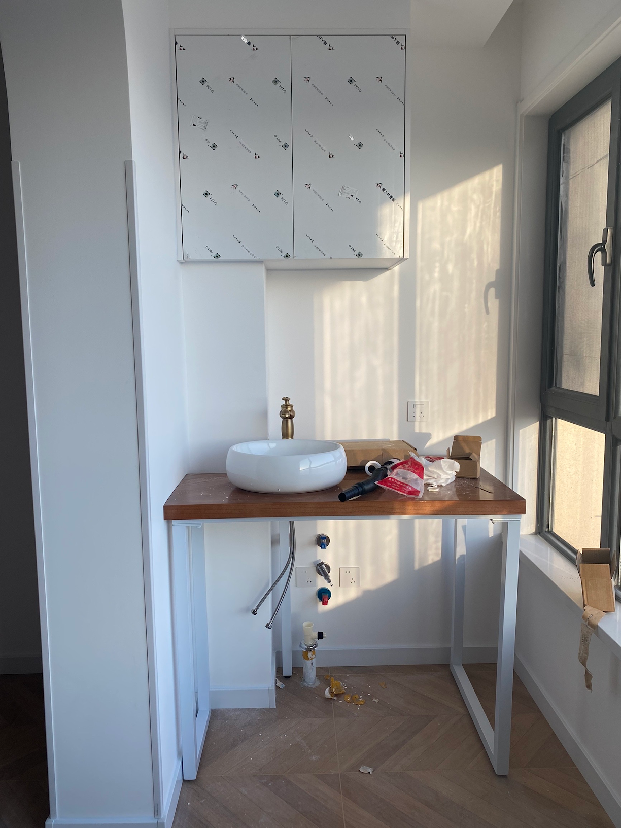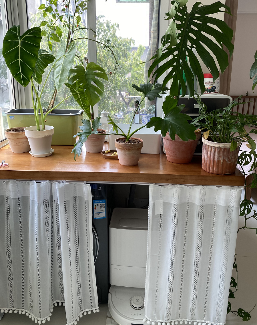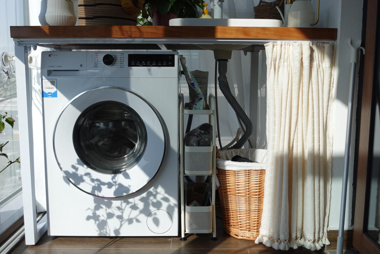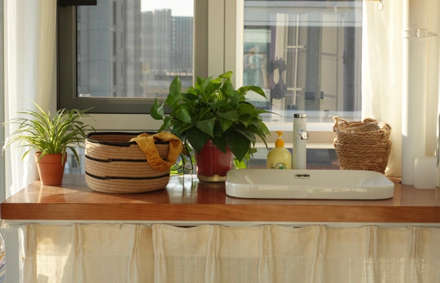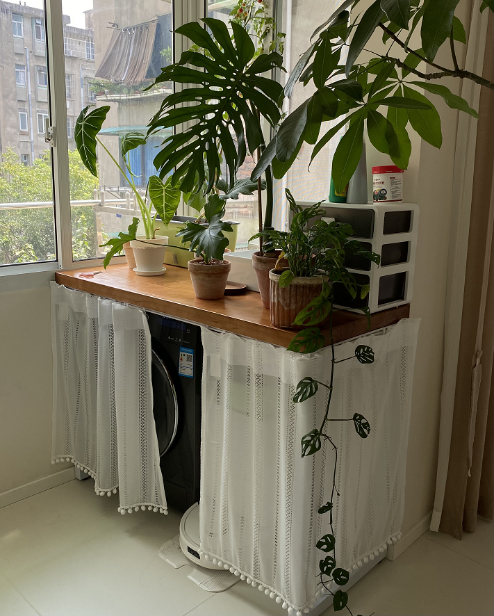맞춤형 견고한 목재 조리대 발코니 세탁기 랙 위 소형 아파트 미니멀리스트 공간 변형 싱크대 통합 테이블