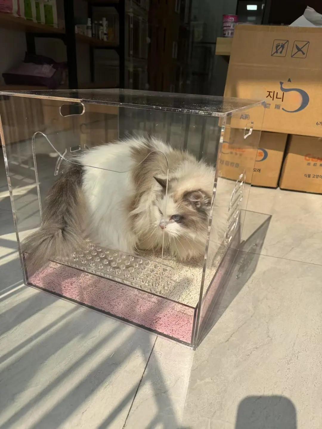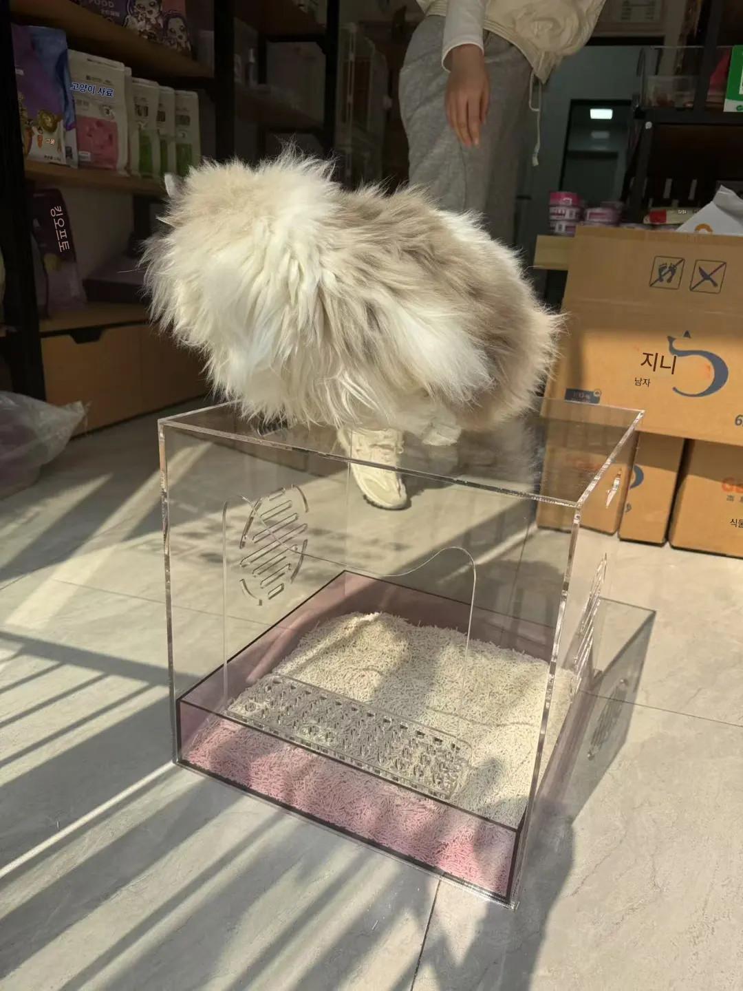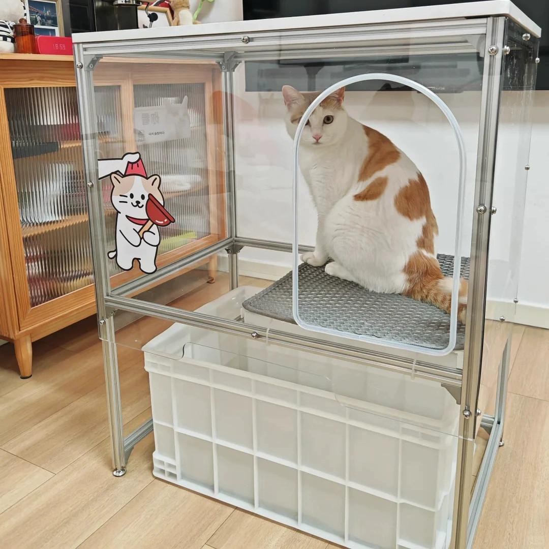 [맞춤형] 아크릴 DIY 고양이 모래상자 캐비닛 고양이 모래상자 고양이 변기 대형 냄새 방지 폐쇄형
