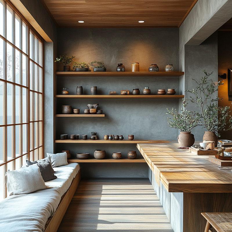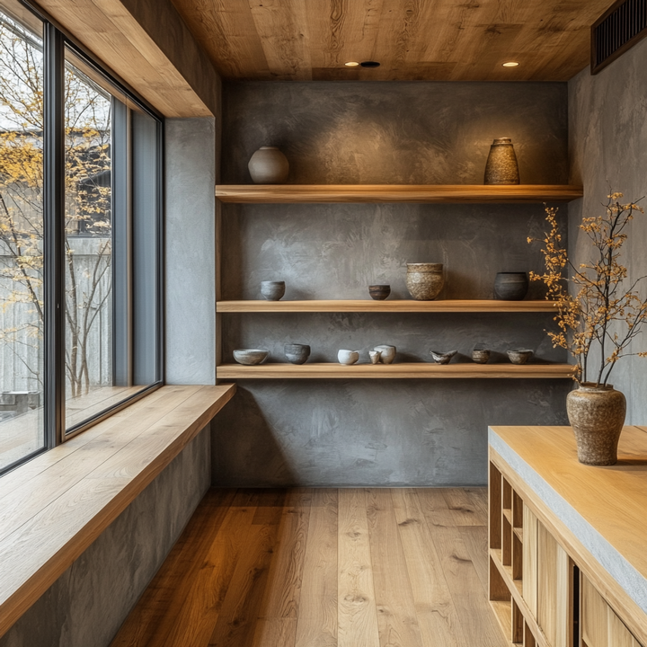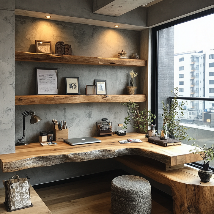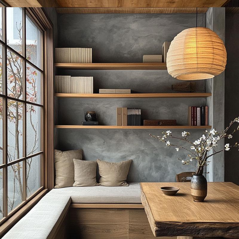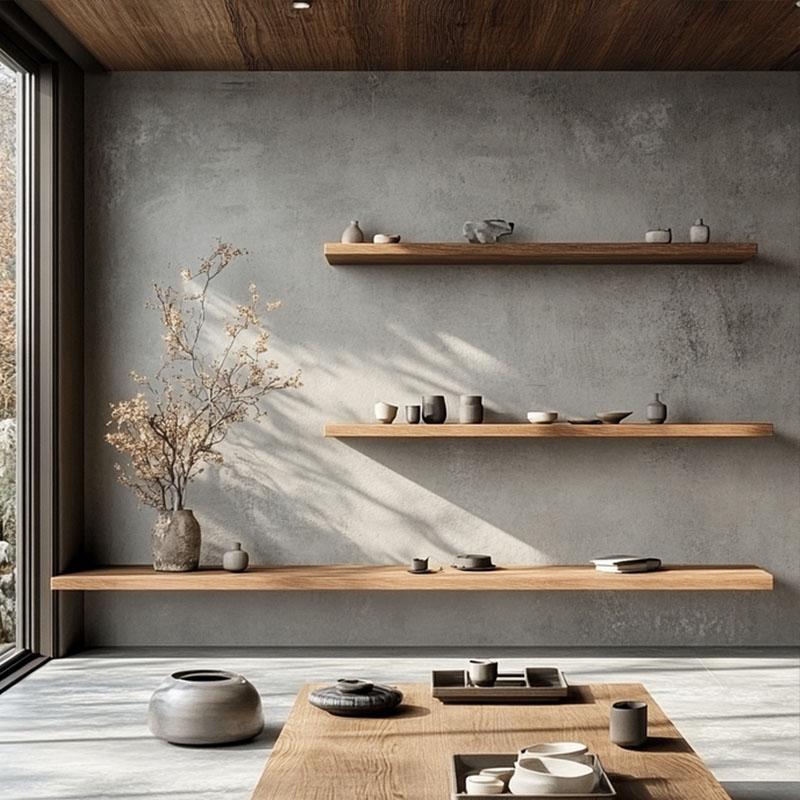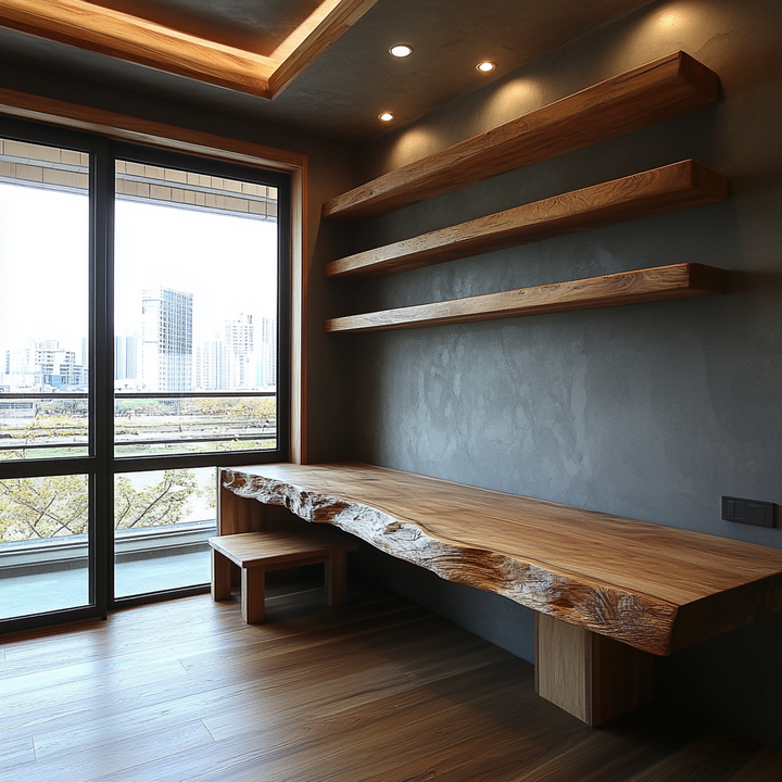 맞춤형 오리지널 목재 무도장 선반 와비사비 스타일 견고한 목재 심플한 한 단어 파티션 선반 층 보드 벽면 수납 책장