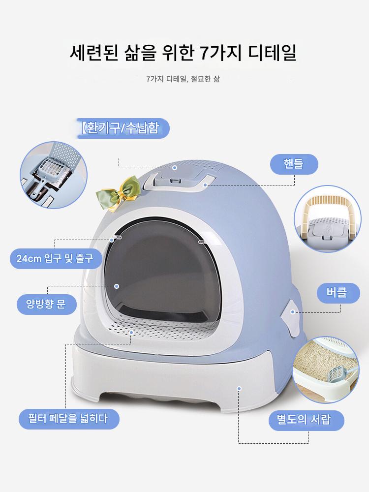 메이카 고양이 화장실 완전 밀폐형 대형 서랍형 새끼 고양이용 튀김 방지 탈취 고양이용품 고양이 화장실