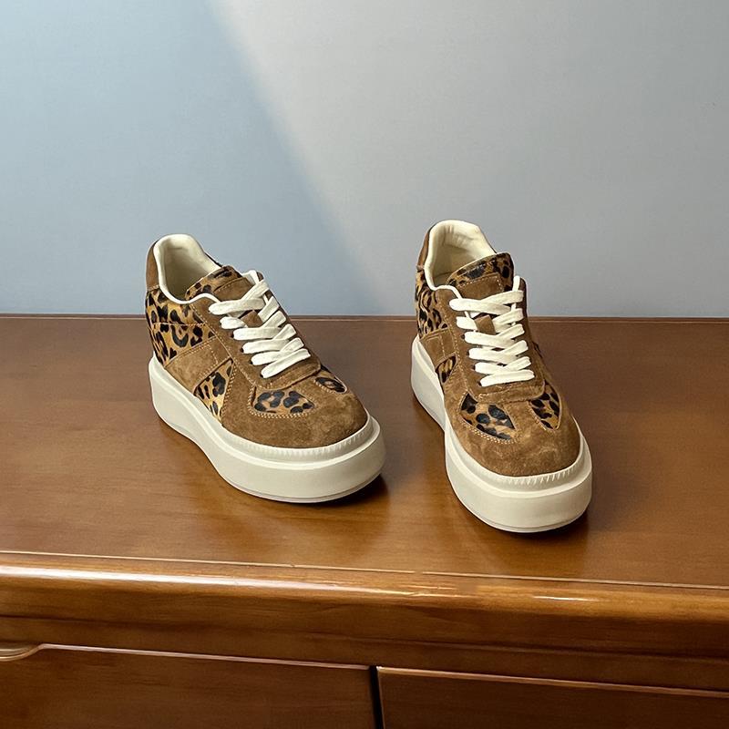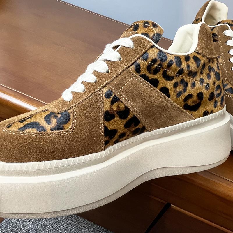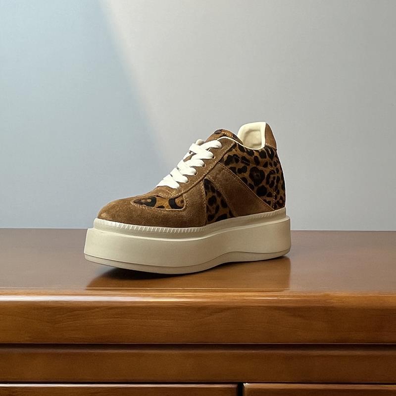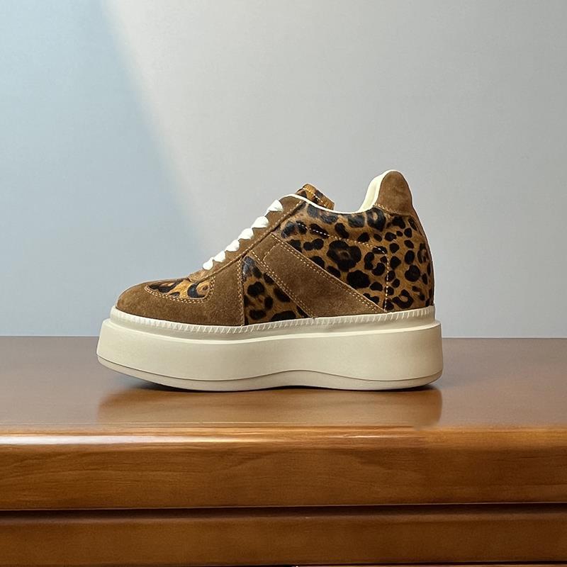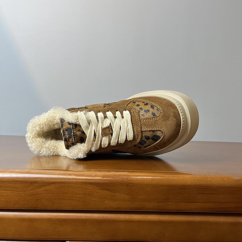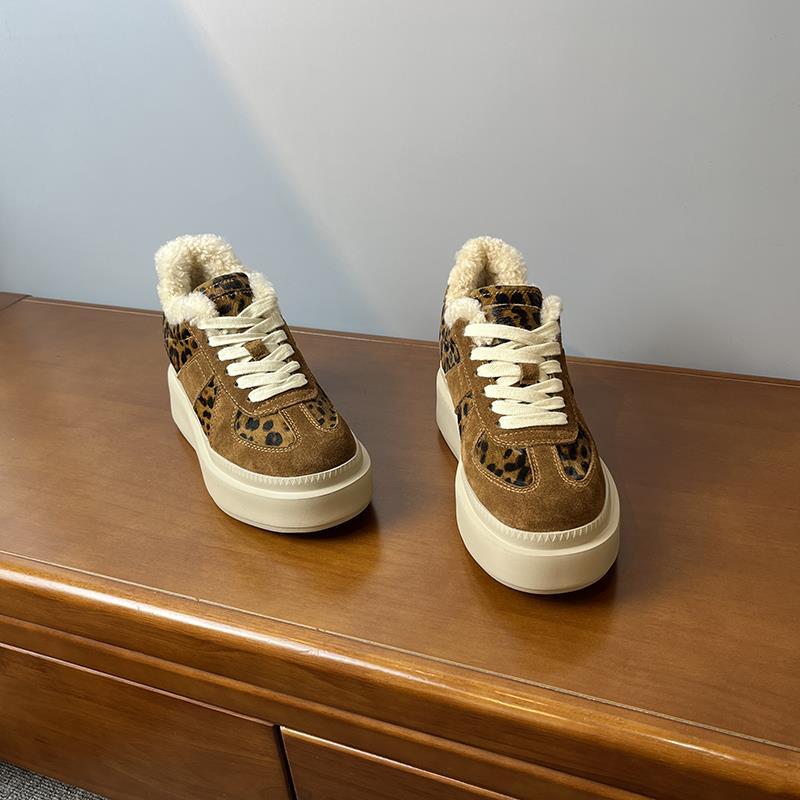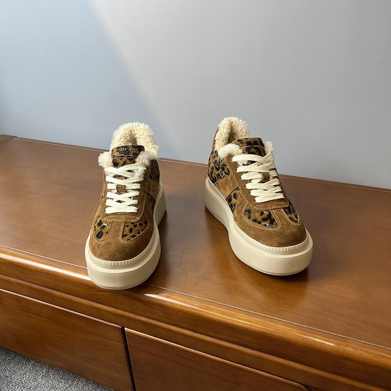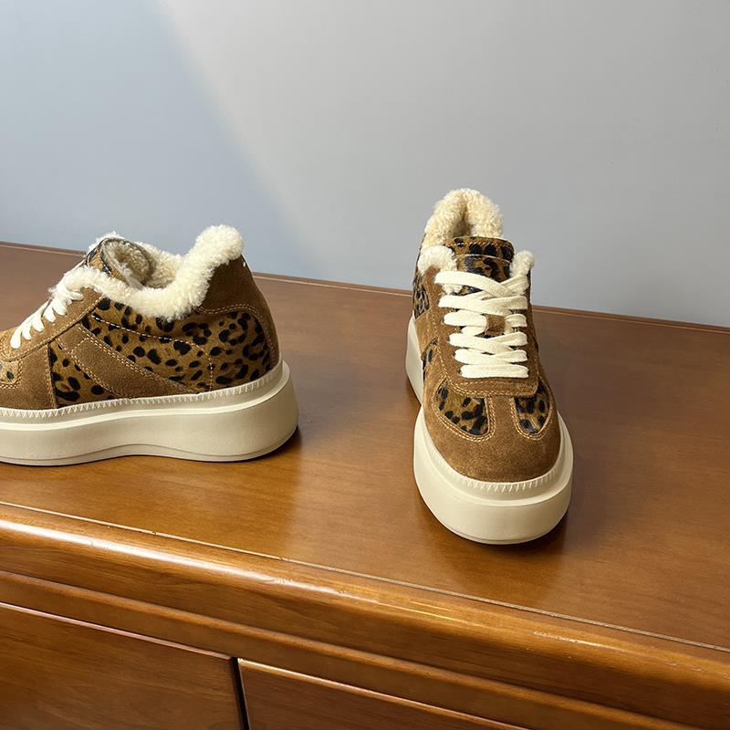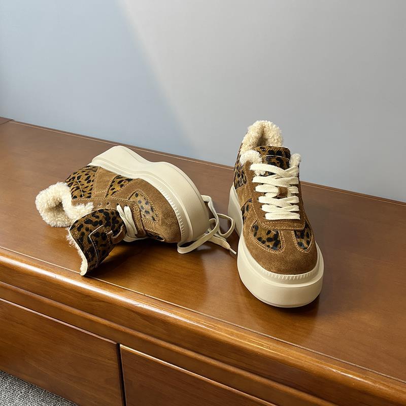 메일라드 브라운 내부 높이 증가 8CM 독일 트레이닝화 여성 겨울 플러스 모피 레오파드 프린트 말 털 10CM 두꺼운 바닥 캐주얼 스니커즈