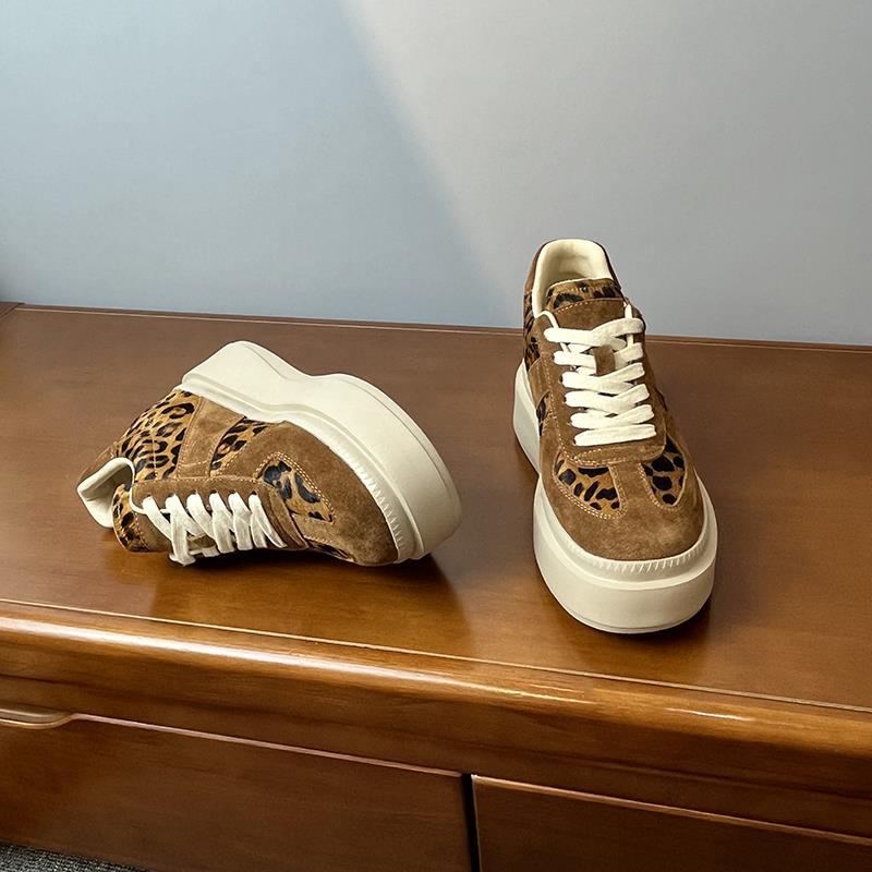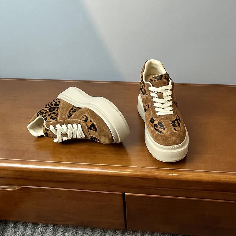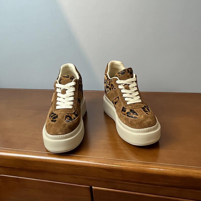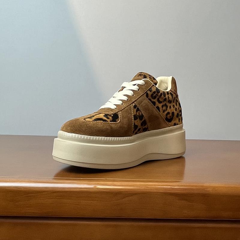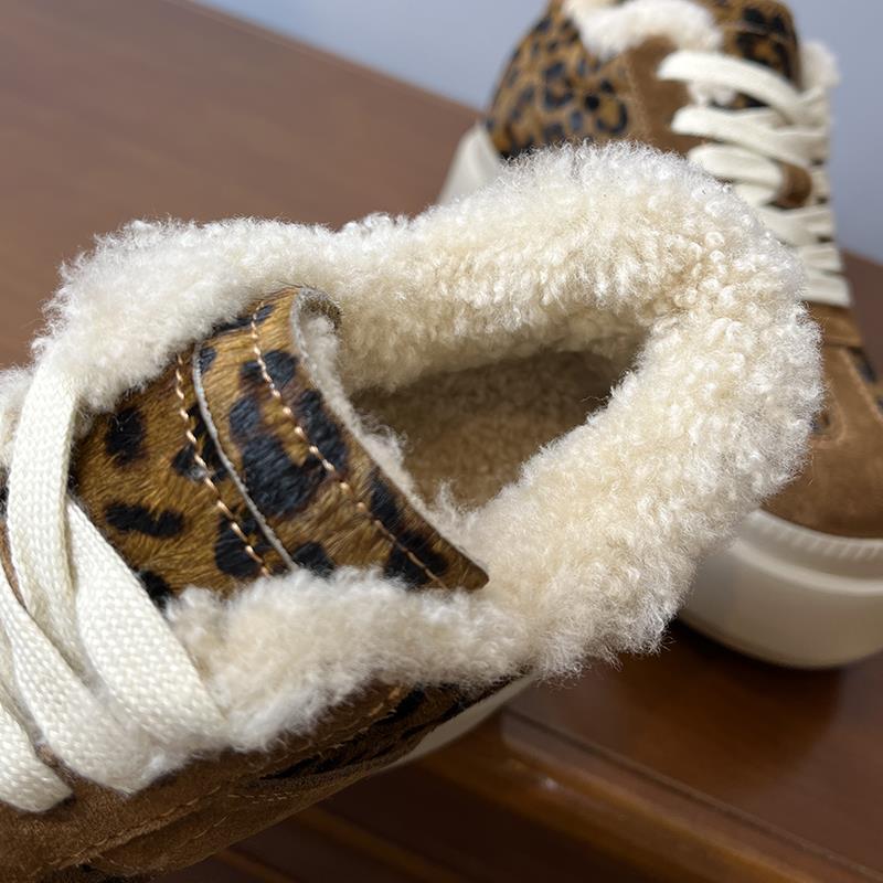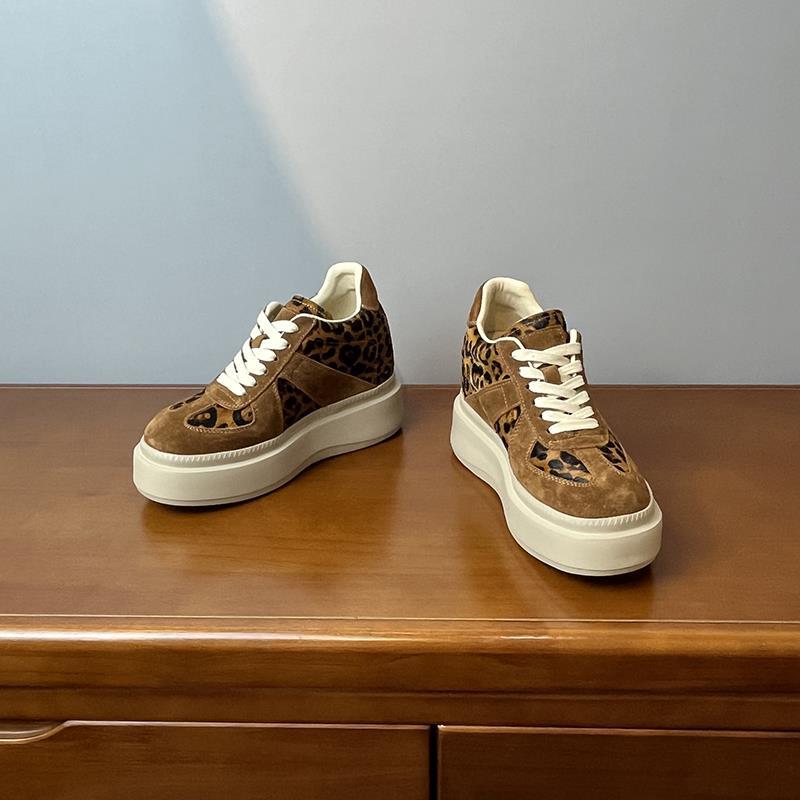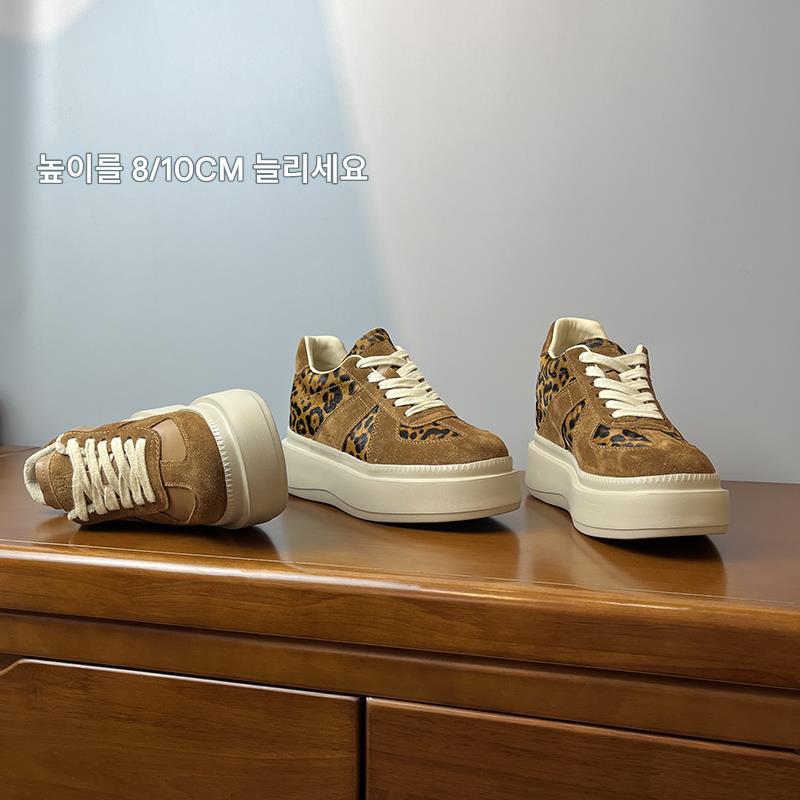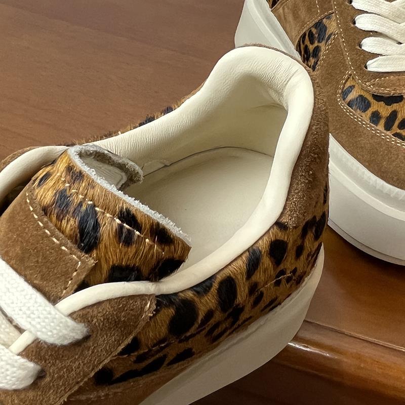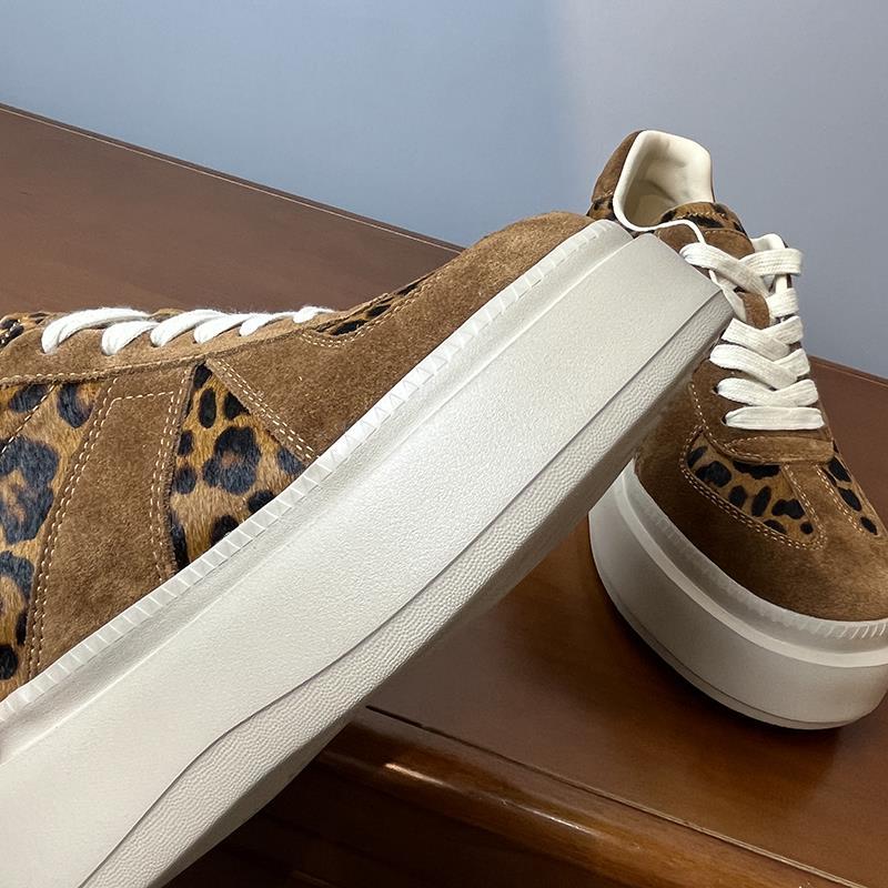 메일라드 브라운 내부 높이 증가 8CM 독일 트레이닝화 여성 겨울 플러스 모피 레오파드 프린트 말 털 10CM 두꺼운 바닥 캐주얼 스니커즈