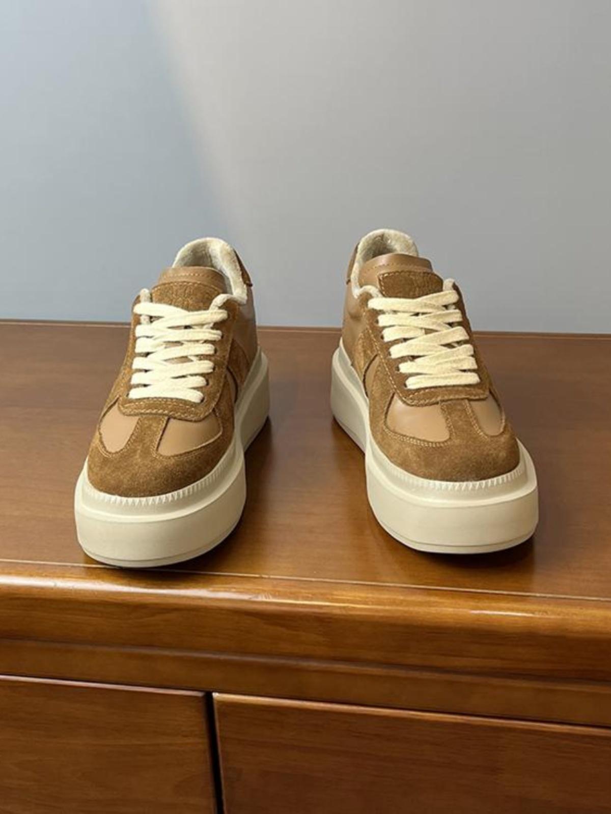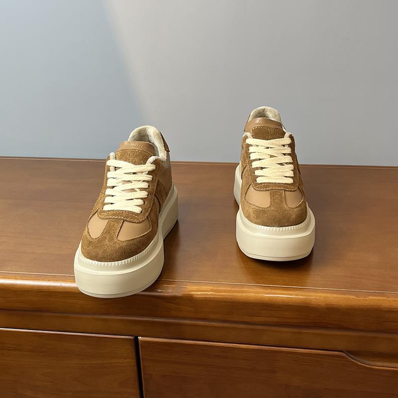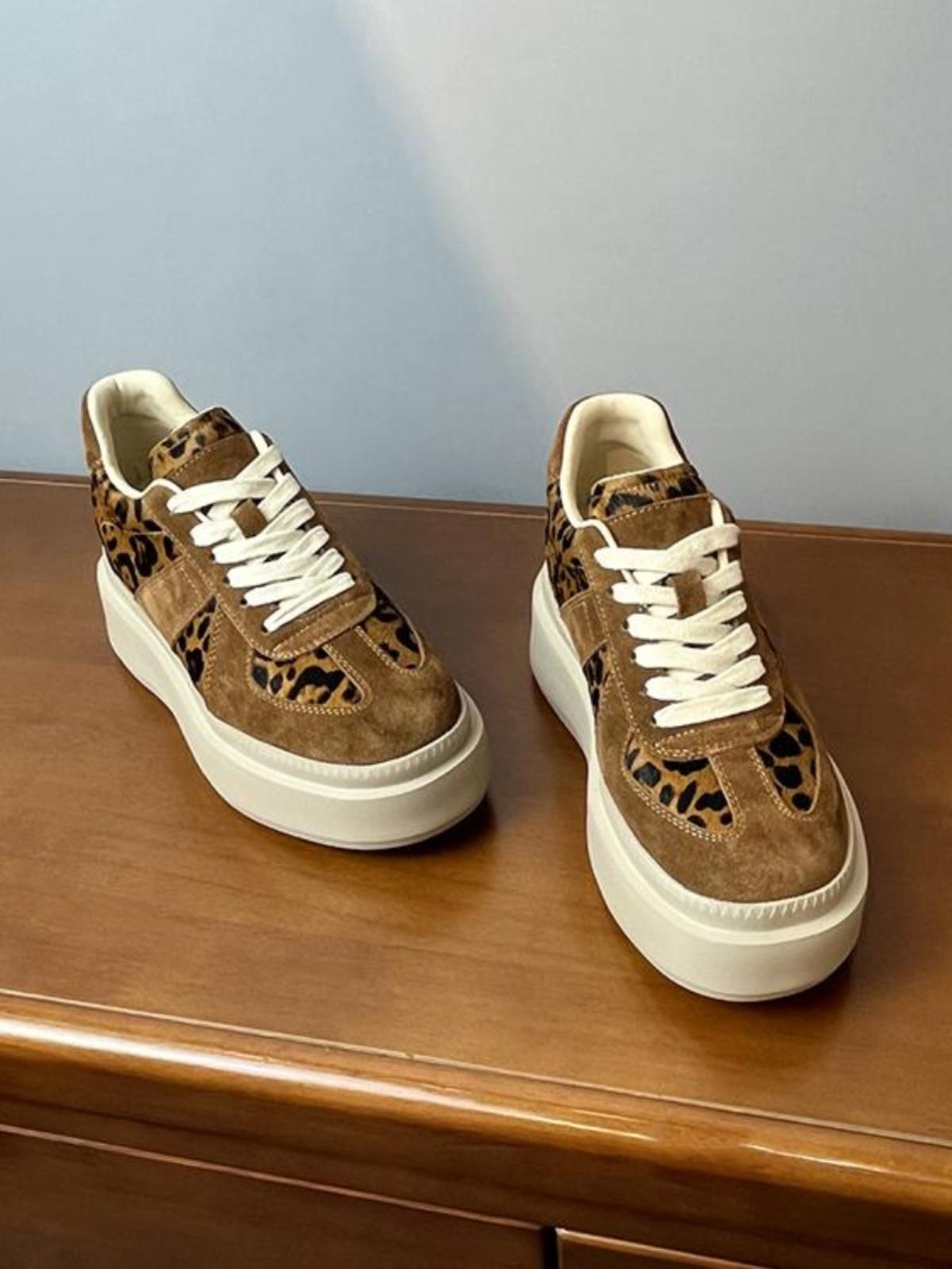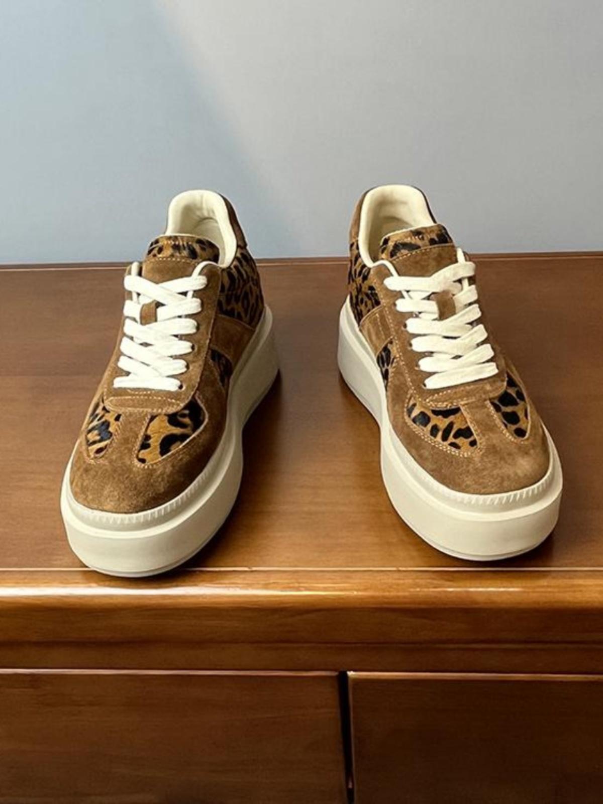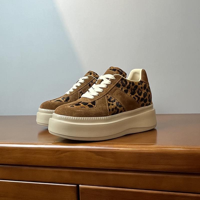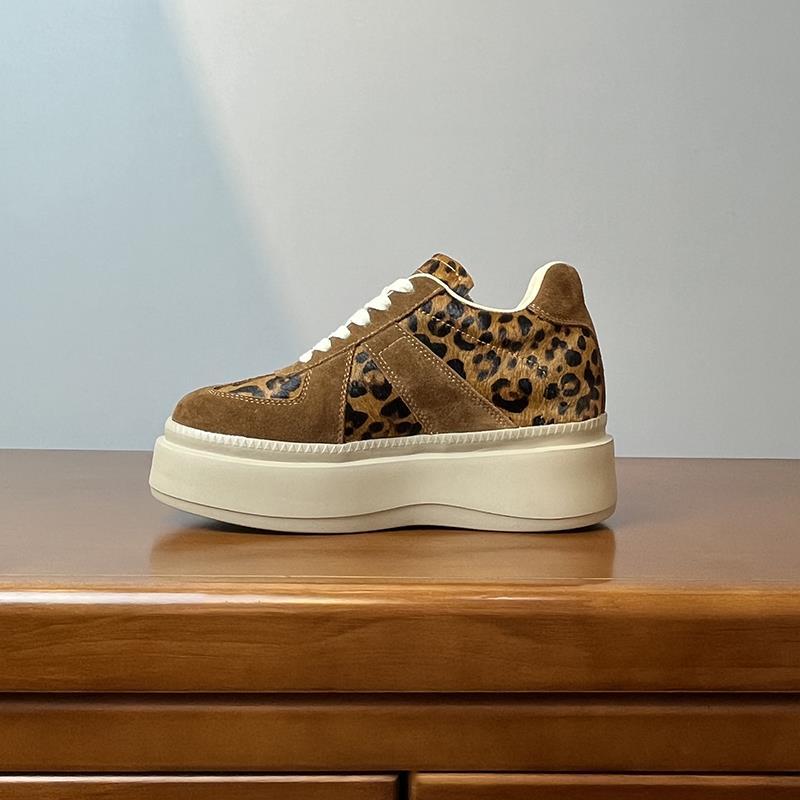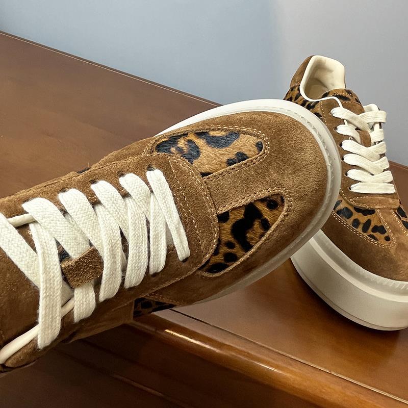 메일라드 브라운 내부 높이 증가 8CM 독일 트레이닝화 여성 겨울 플러스 모피 레오파드 프린트 말 털 10CM 두꺼운 바닥 캐주얼 스니커즈