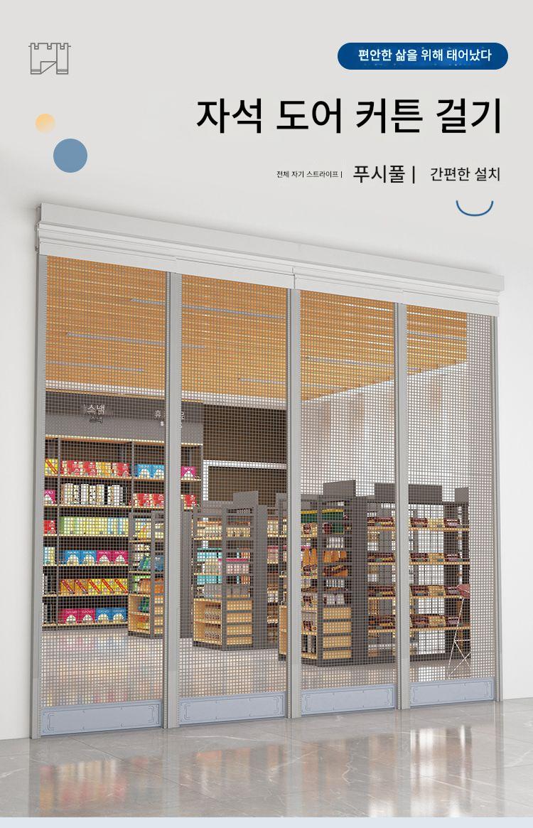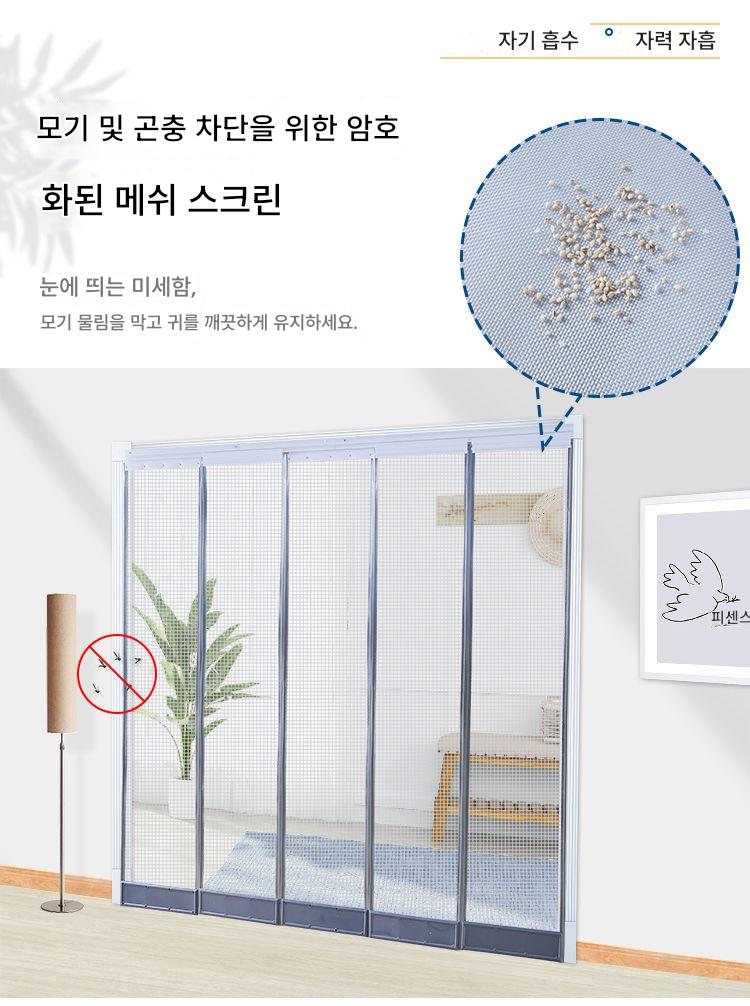 모기 방지 도어커튼 자석 셀프 프라이밍 여름 메쉬 파티션 숍 상업용 번역 슬라이딩 더블 트랙 푸시풀 홈 통기성