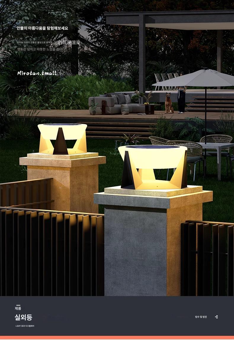 모던하고 심플한 조경 정원 조명 태양광 기둥 조명 창의적인 방수 디자인 벽 마당 기둥 조명