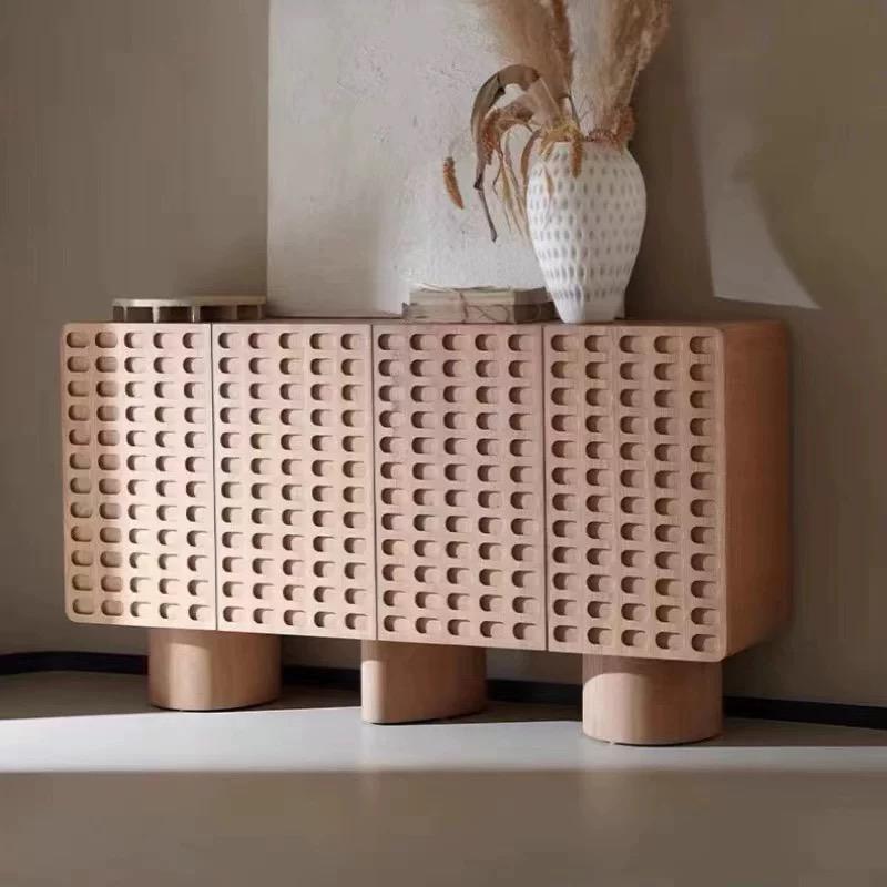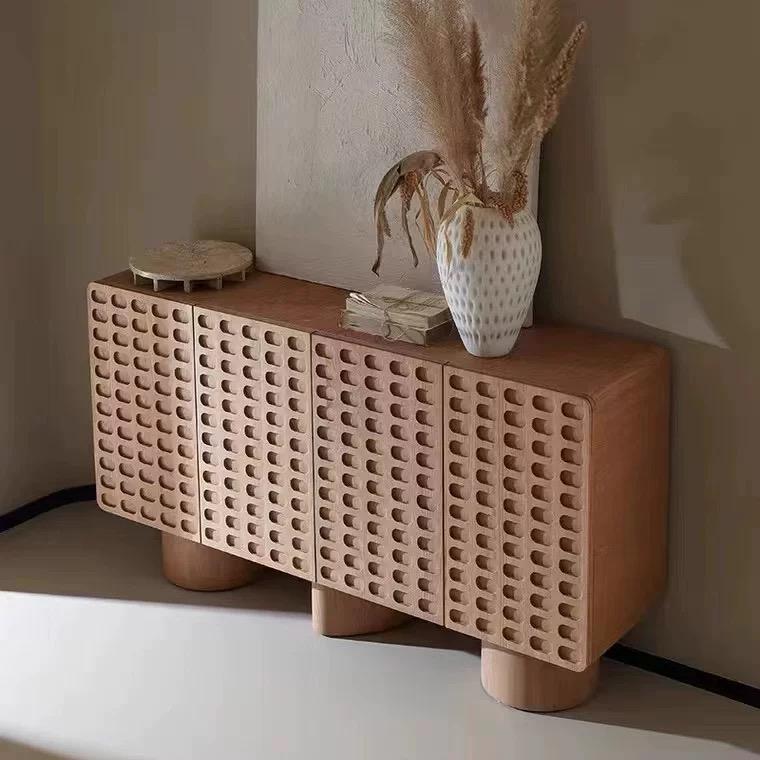모던 노르딕 와비사비 스타일 견고한 원목 식탁 사이드보드 라이트 럭셔리 심플 통나무 현관 캐비닛 티 캐비닛 수납 캐비닛 저축 캐비닛