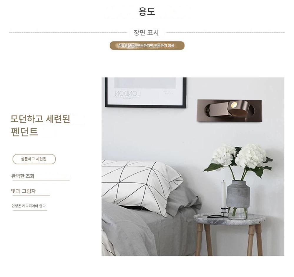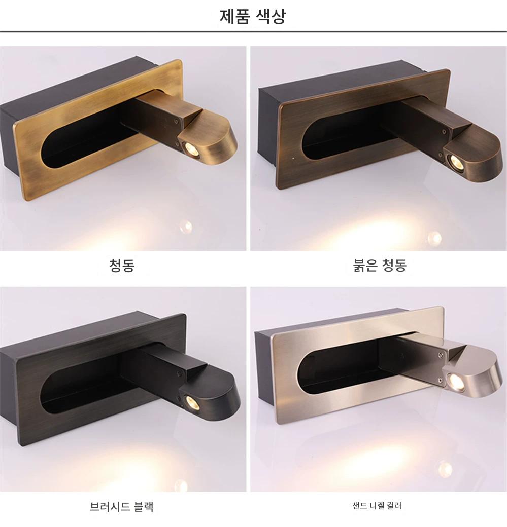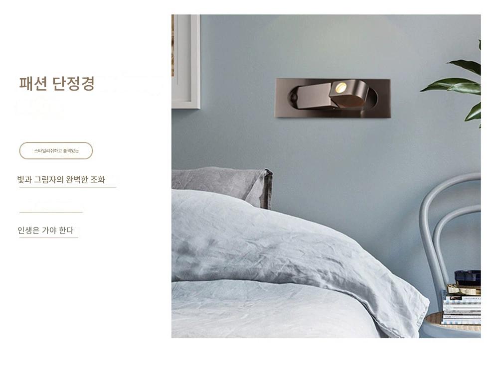 모던 심플 내장형 벽등 게스트룸 침실 호텔 침대 옆 거실 LED 광원 회전형 독서등