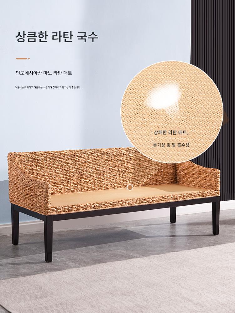 모던 심플 라탄 소파 거실 라탄 벤치 3인용 소파 의자 등받이 의자 레스토랑 부스 스트레이트 소파