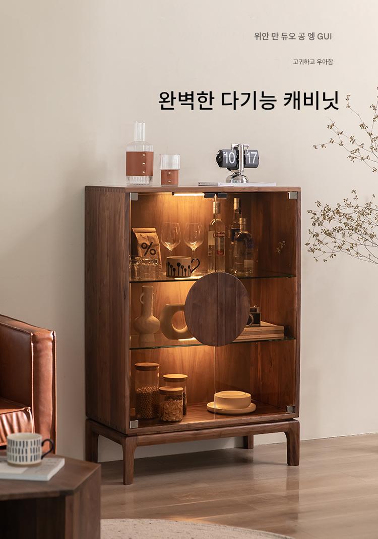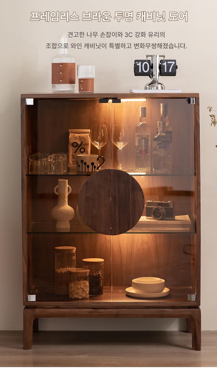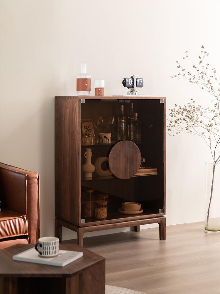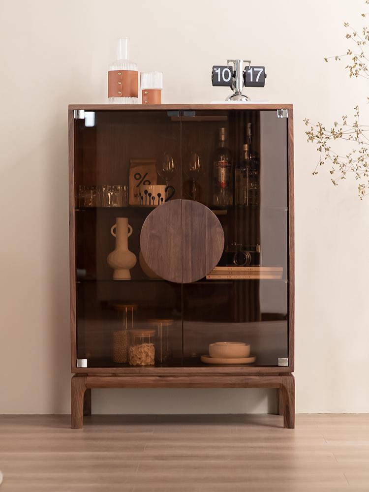 모던 심플 북미산 검은 호두 원목 식탁 옆 와인 캐비닛 거실 다기능 더블 도어 수납 캐비닛 현관 캐비닛