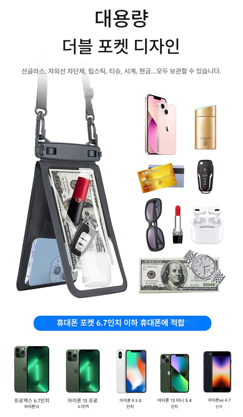 모바일 폰 방수 가방 투명 다이빙 커버 드리프팅 터치 스크린 범용 수영 방수 가방 밀봉 이중 구획 테이크어웨이 방수 가방