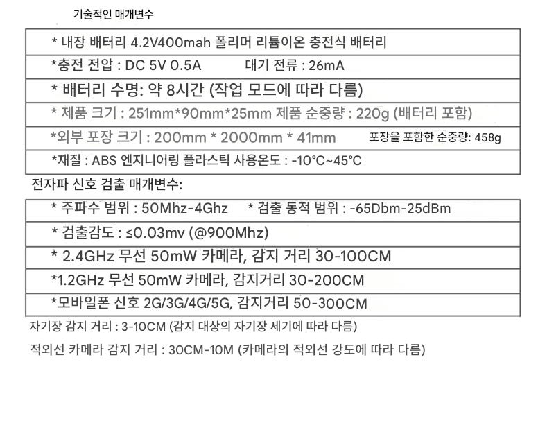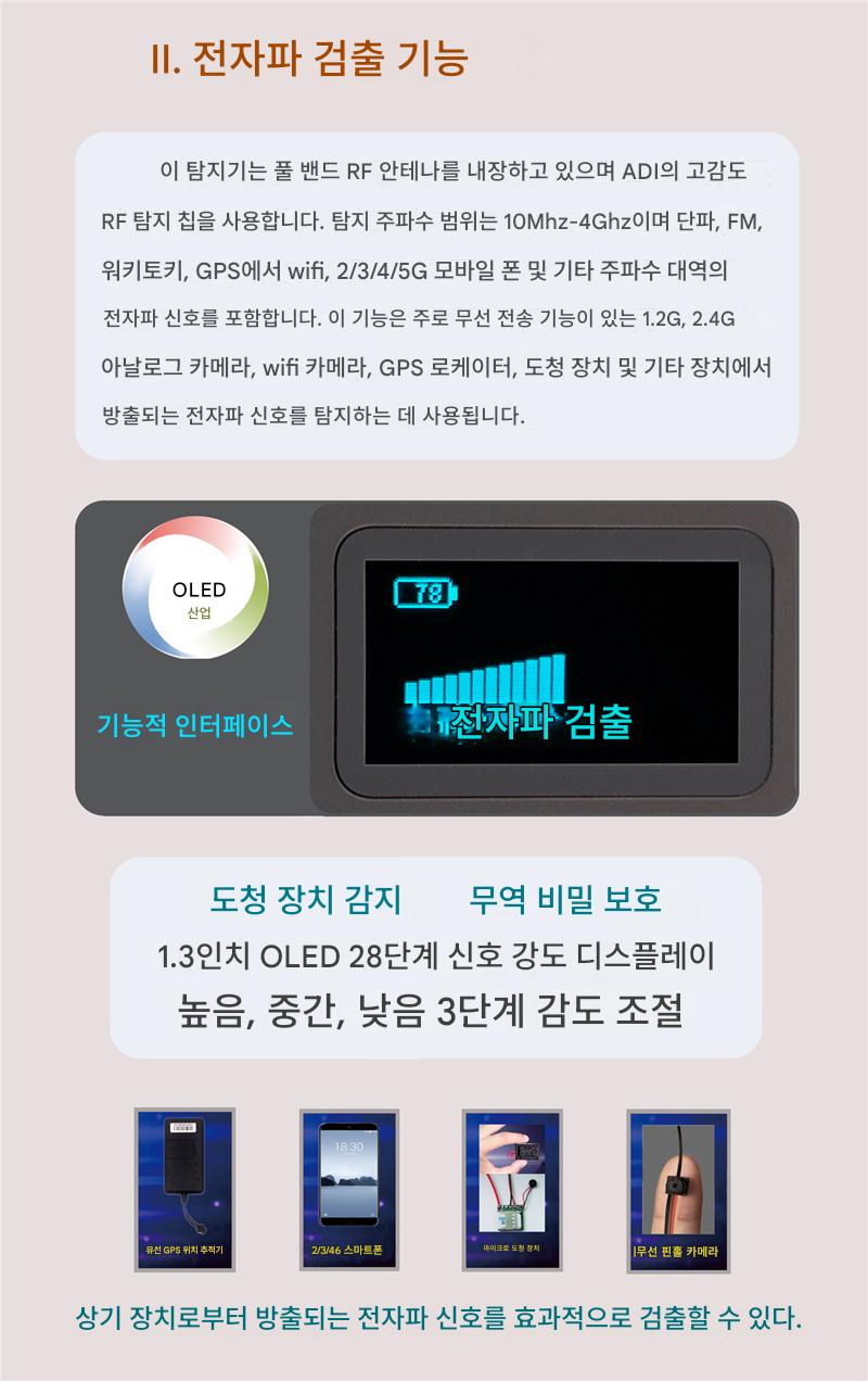 몰래카메라 방지 지능형 감지기 도청 방지 모니터링 신호 추적 위치 GPS 감지기