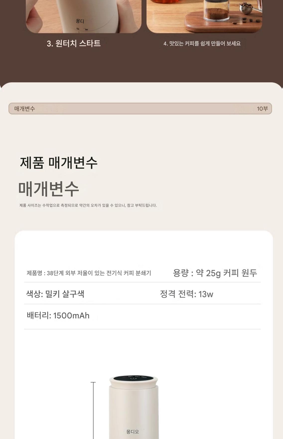 몽디오 전기 원두 분쇄기 커피 원두 분쇄기 커피 분쇄기 가정용 핸드 커피 머신 분쇄기