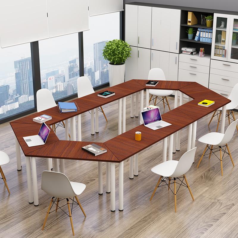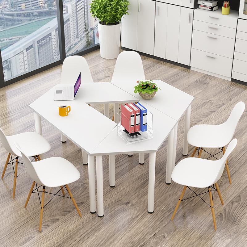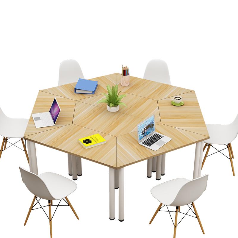 무료 배송 사다리꼴 접합 회의 테이블 크리에이티브 육각형 테이블 교육 테이블 조합 심플 모던 사무용 책상 견고한 나무