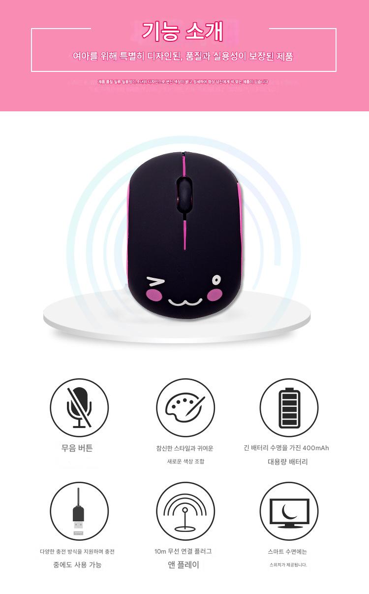 무선 마우스 선물 마우스 무소음 충전식 귀여운 만화 데스크탑 노트북 범용