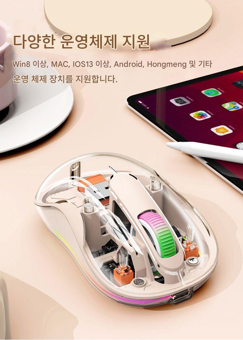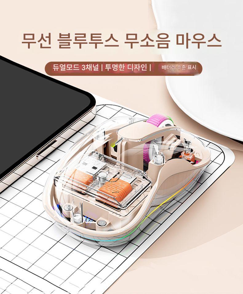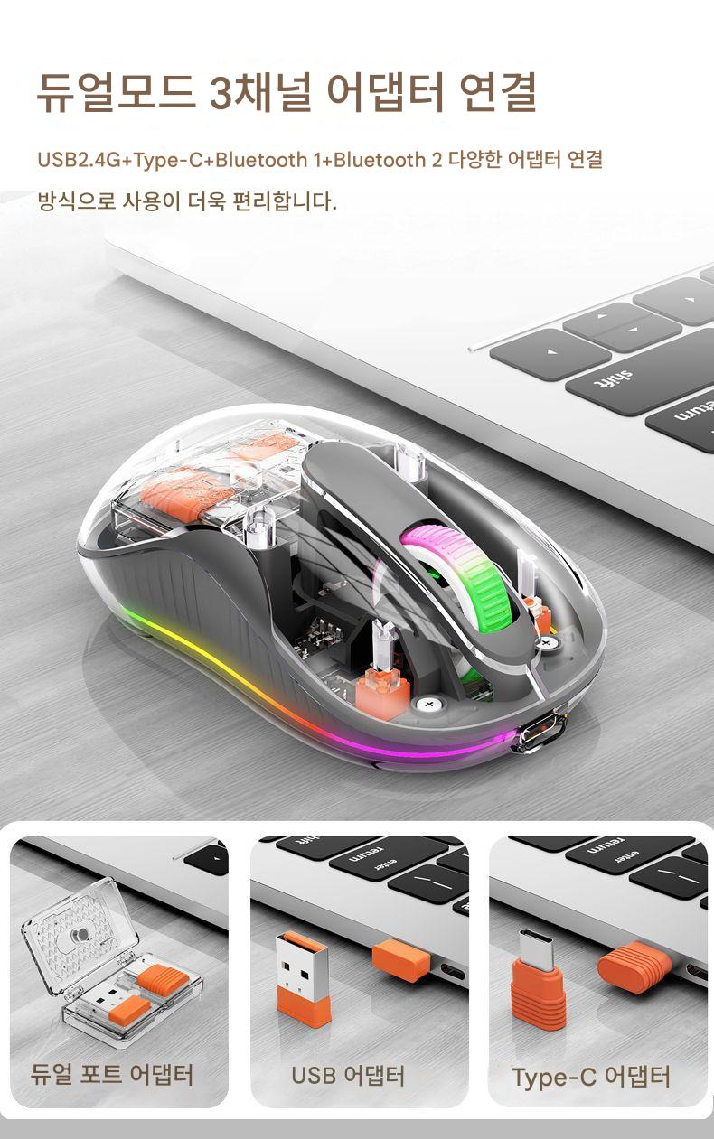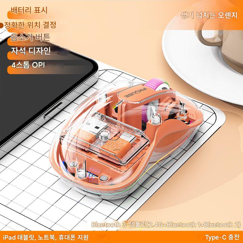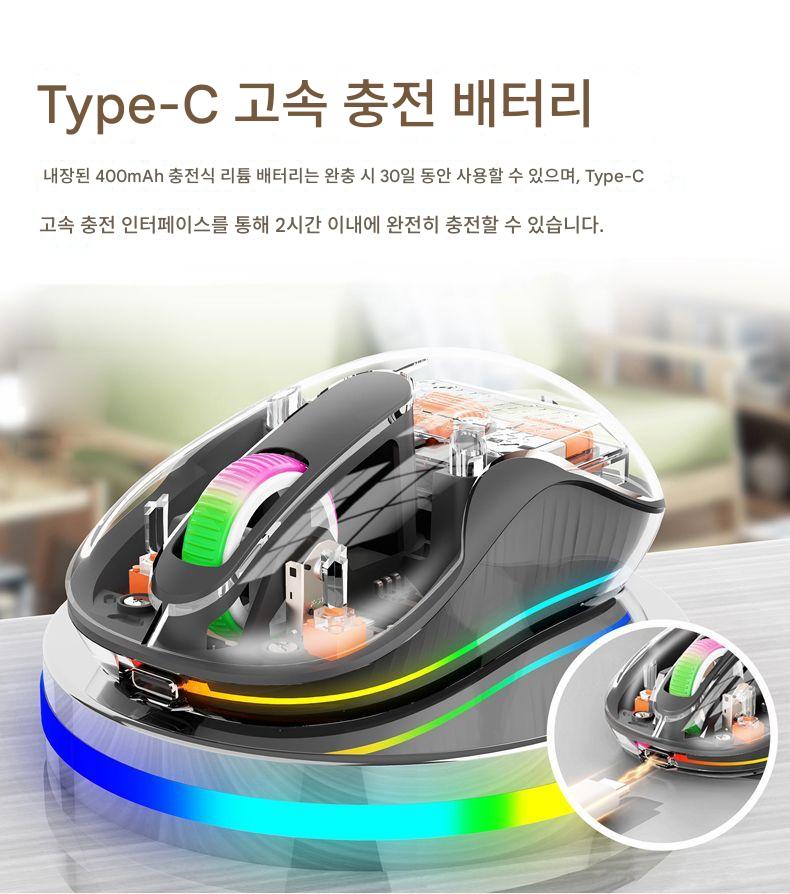 무선 마우스 타입-C 충전 무소음 블루투스 홈 오피스 휴대용 컴퓨터 투명 다채로운 조명 높은 가치