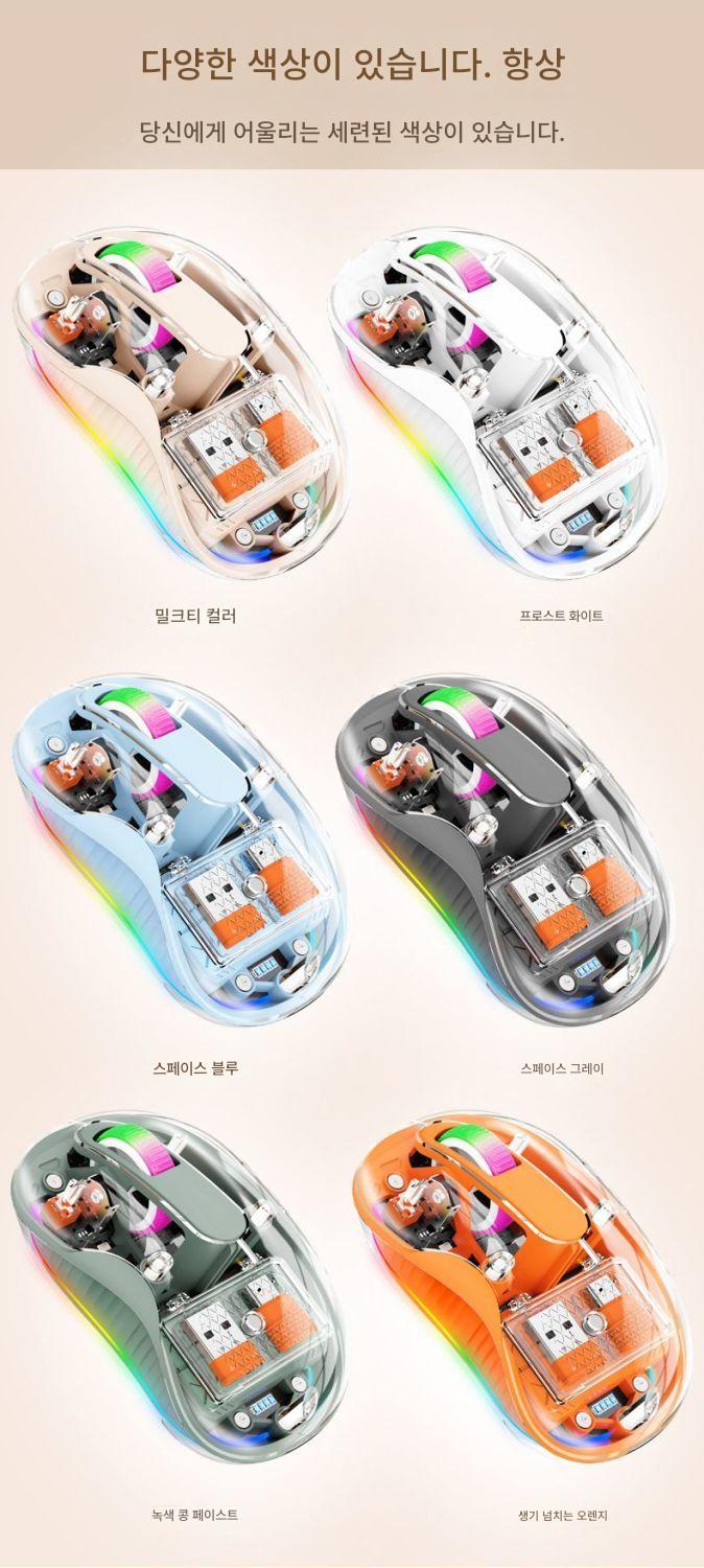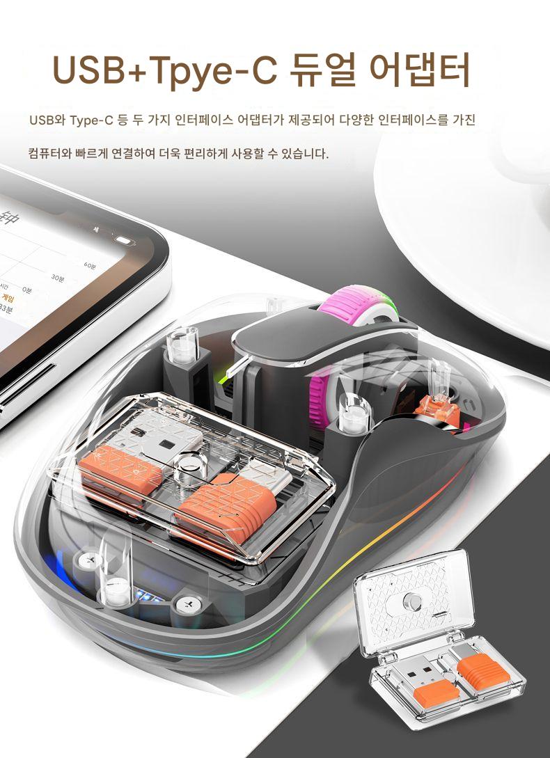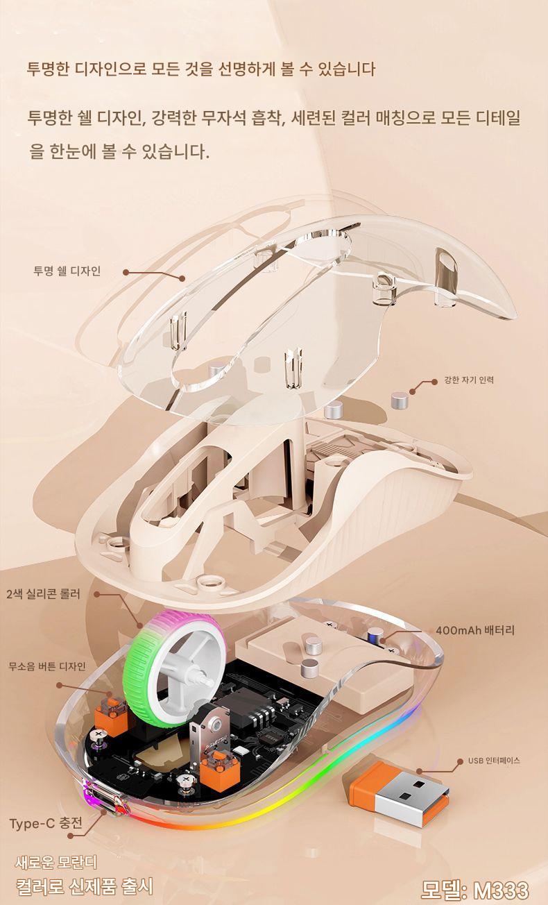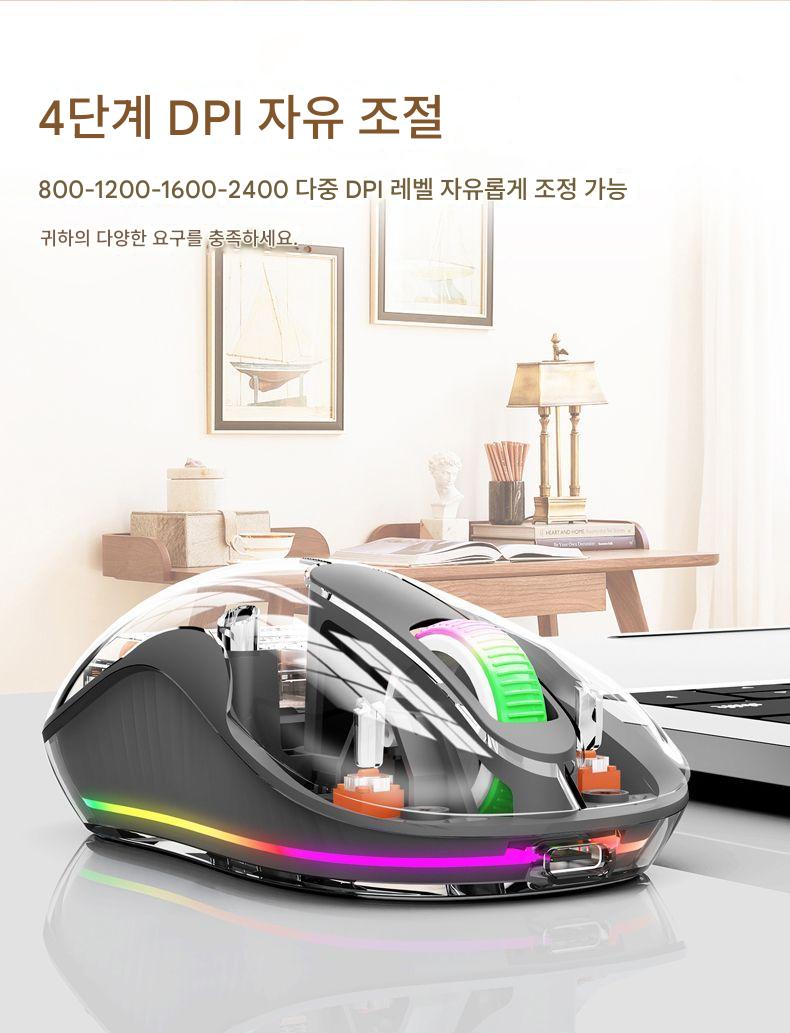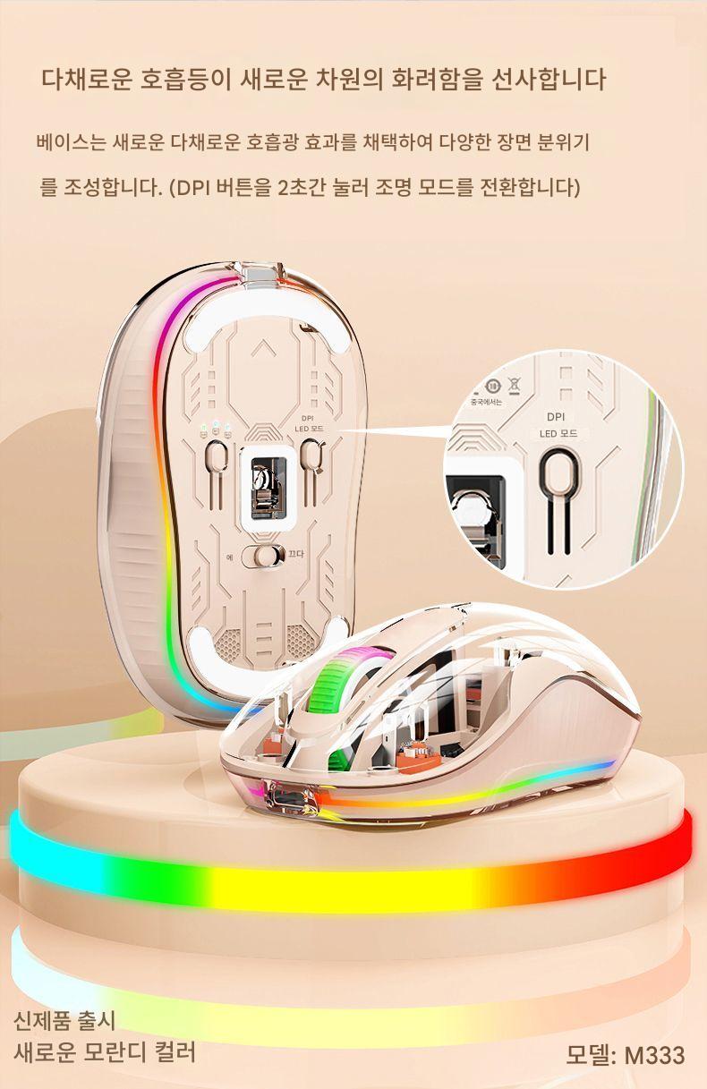 무선 마우스 타입-C 충전 무소음 블루투스 홈 오피스 휴대용 컴퓨터 투명 다채로운 조명 높은 가치
