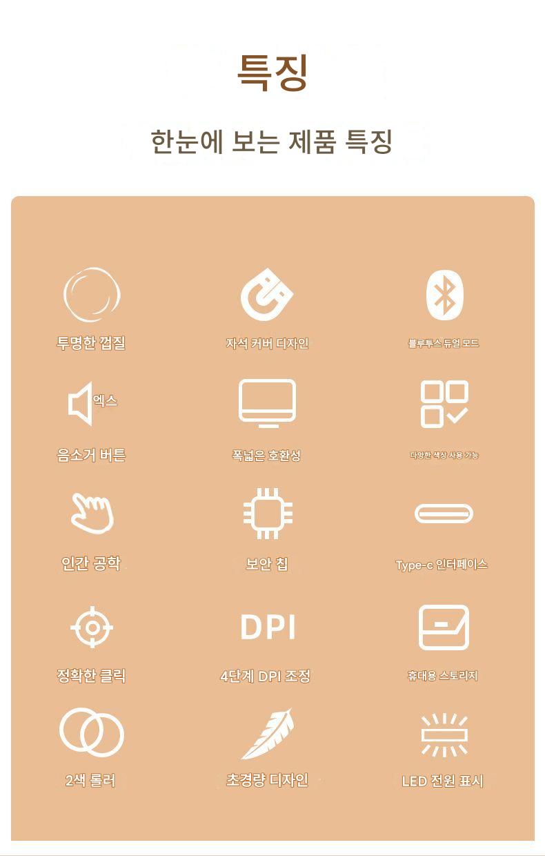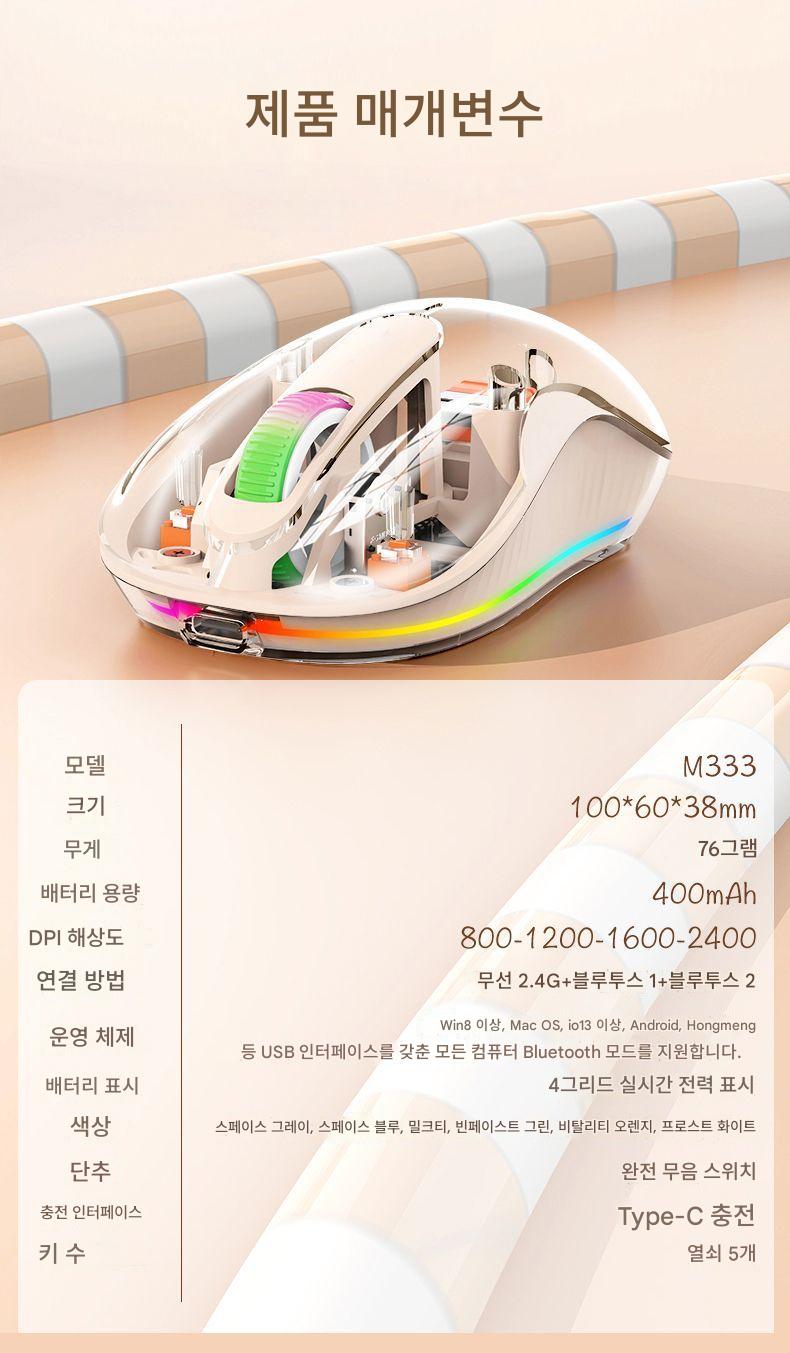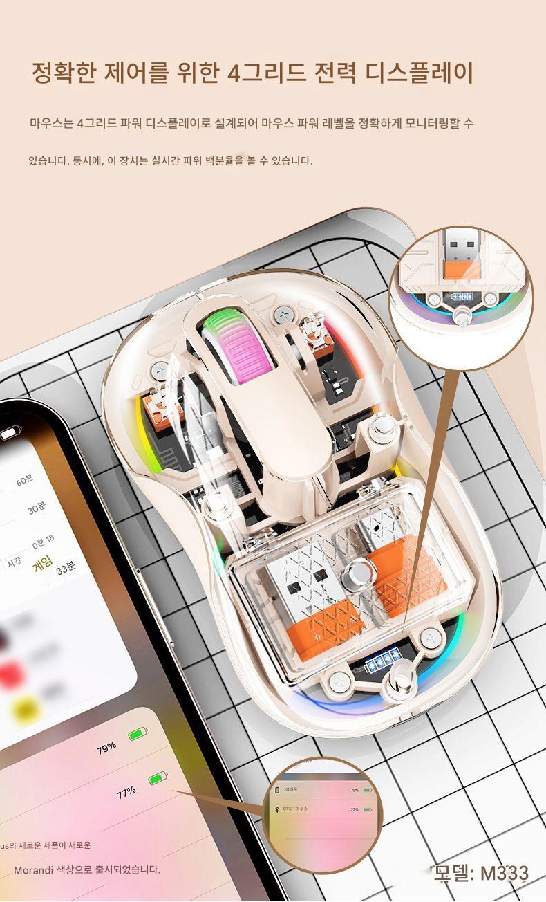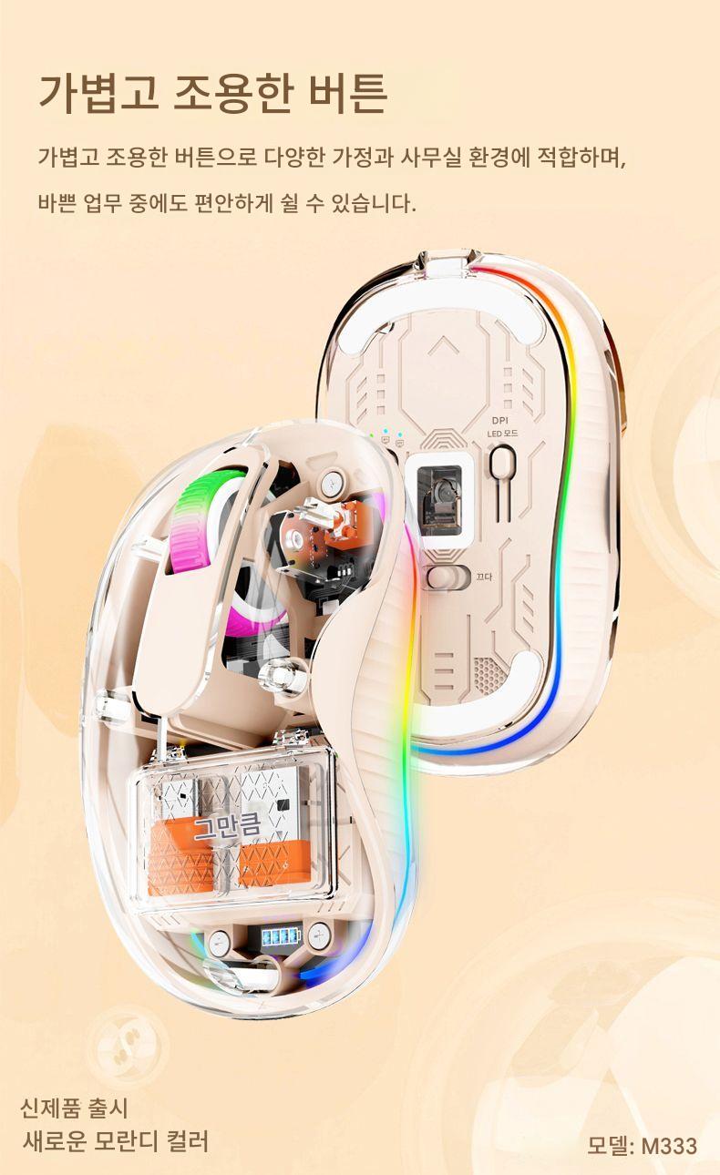 무선 마우스 타입-C 충전 무소음 블루투스 홈 오피스 휴대용 컴퓨터 투명 다채로운 조명 높은 가치