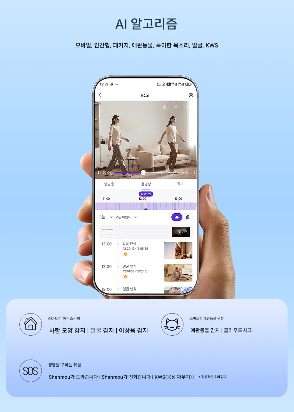 무선 모니터링, 4G 데이터 전송 불필요, 고화질 야간 투시 기능, 모바일 폰 제어 기능을 갖춘 BC6+ 흔들림 방지 카메라