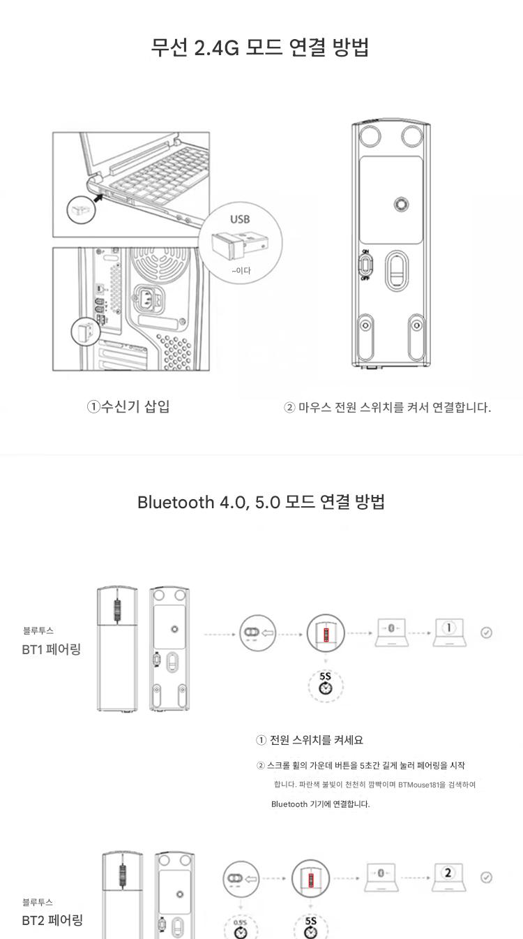 무선 블루투스 마우스 무소음 미니 충전식 소형 마우스 3모드 마우스 노트북 태블릿 모바일 폰 범용