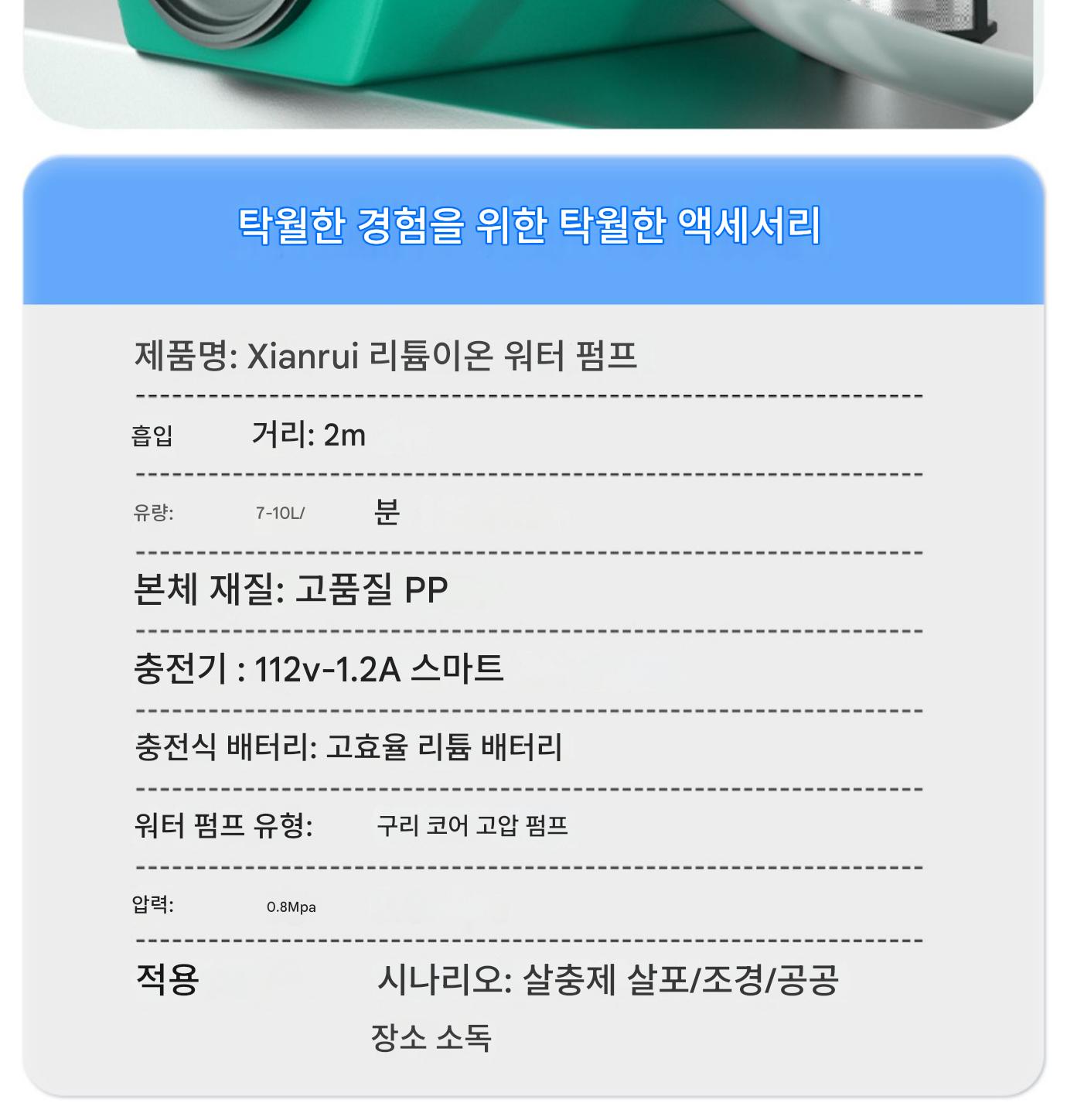 물뿌리개 기계 충전식 물 펌프 야외 자동 가정용 관개 펌프 농업 야채 밭 물뿌리기
