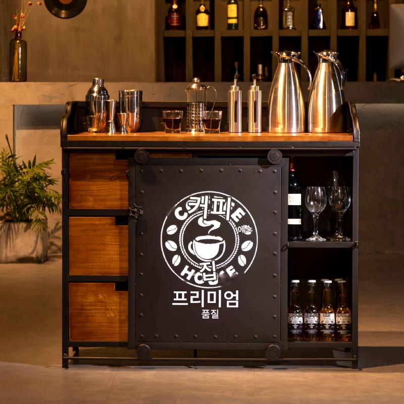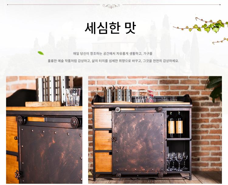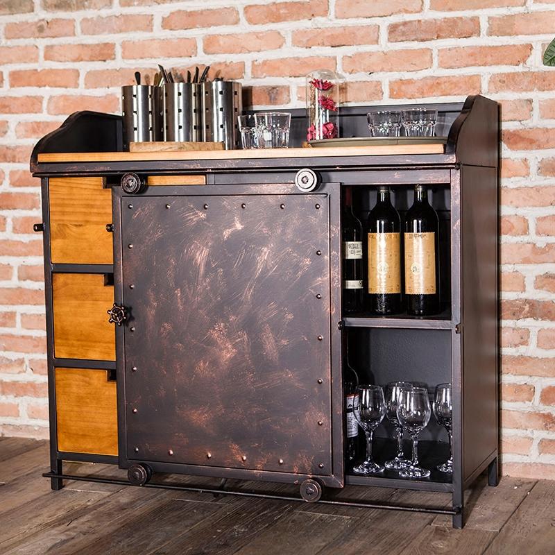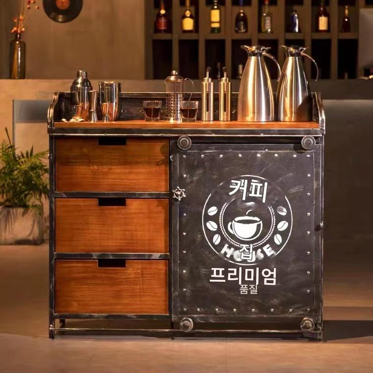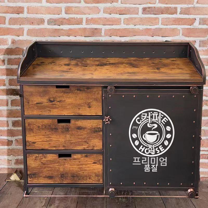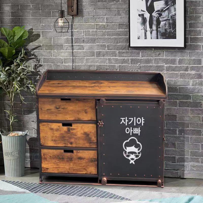미국산 단단한 목재 식탁 사이드보드 수납 캐비닛 맞춤형 산업 스타일 복고풍 레스토랑 티테이블 찬장 식탁 캐비닛 작은 와인 캐비닛