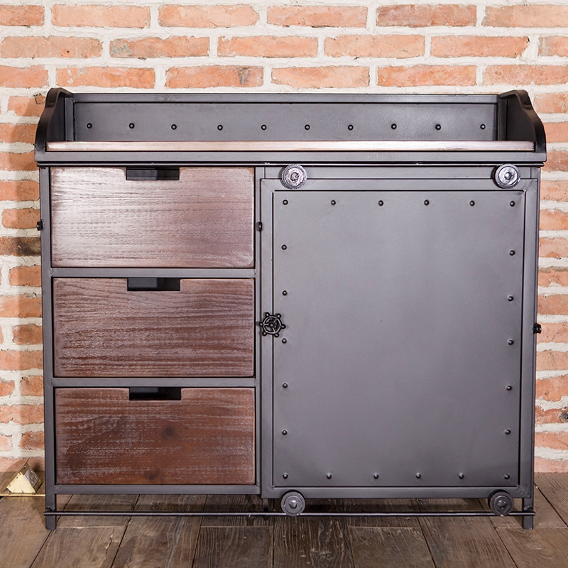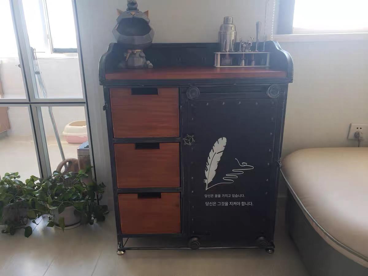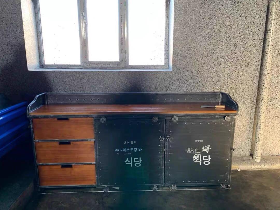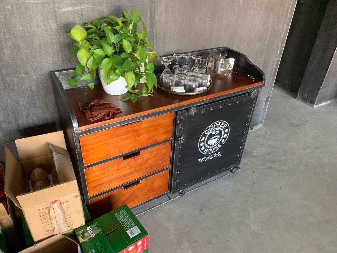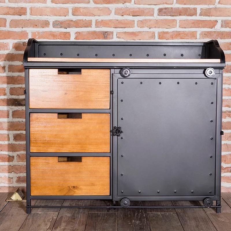 미국산 단단한 목재 식탁 사이드보드 수납 캐비닛 맞춤형 산업 스타일 복고풍 레스토랑 티테이블 찬장 식탁 캐비닛 작은 와인 캐비닛